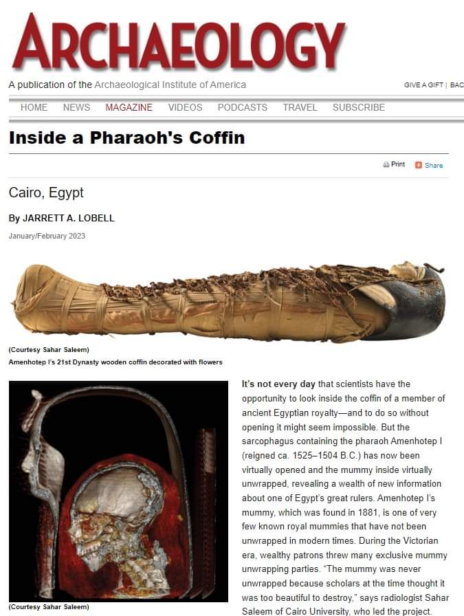 한편, 아멘호텝 1세 CT 스캔 검시는 미국 고고학회(Archaeological Institute of America)가 발행하는 잡지 《고고학Archaeology》이 선정한 ‘2022년 10대 발견’(Top 10 Discoveries of 2022) 중 하나로 선정되었습니다.