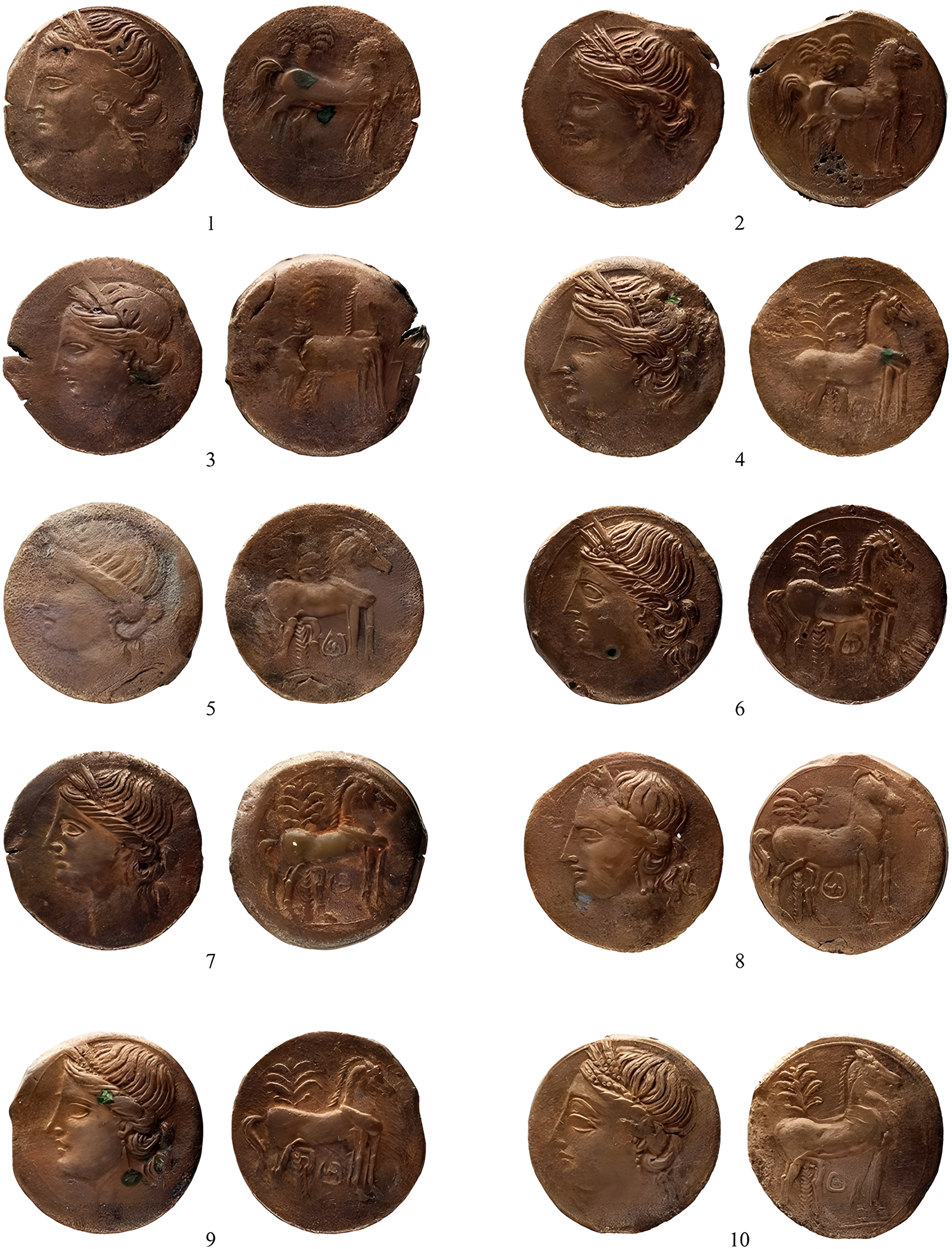 양식으로 볼 때, 전쟁 후기에 카르타고에 있던 단일 조폐국에서 출토된 것으로 보인다.