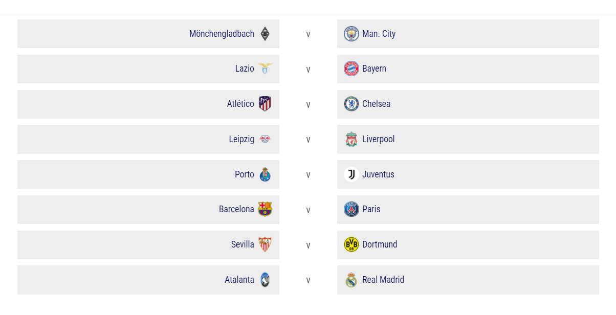 20-21시즌 UEPA 챔피언스리그 16강 대진표가 나왔다.