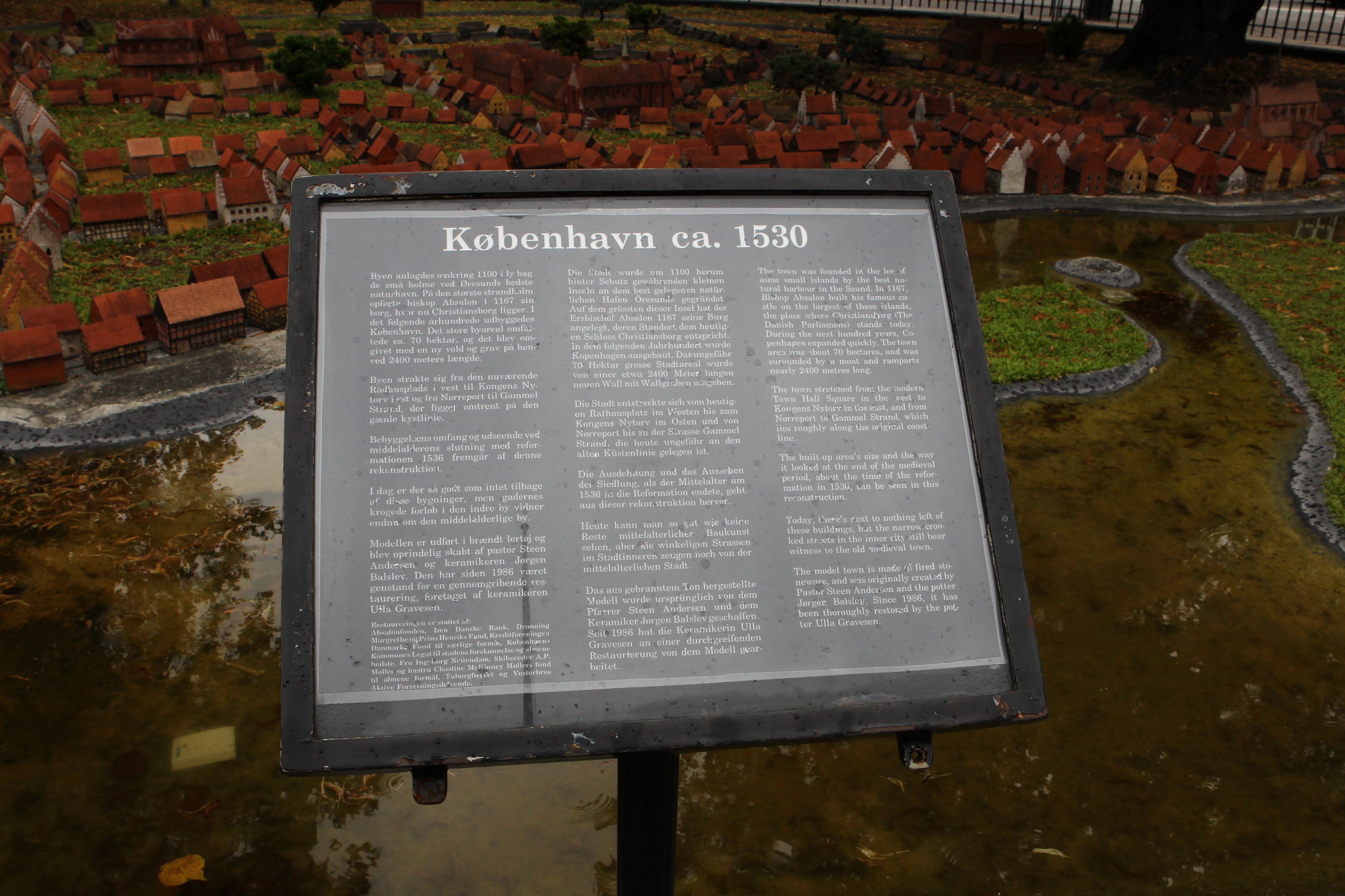 The built-up area's size and the way it looked at the end of the medieval period, about the time of the reformation in 1536, can be seen in this reconstruction.