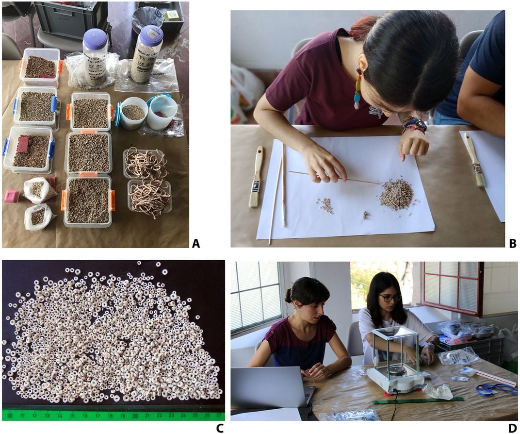 주로 조개껍데기로, 그리고 그보다 적은 양으로 돌과 뼈로 만든 27만 개가 넘는 구슬이 발견된 것이다.