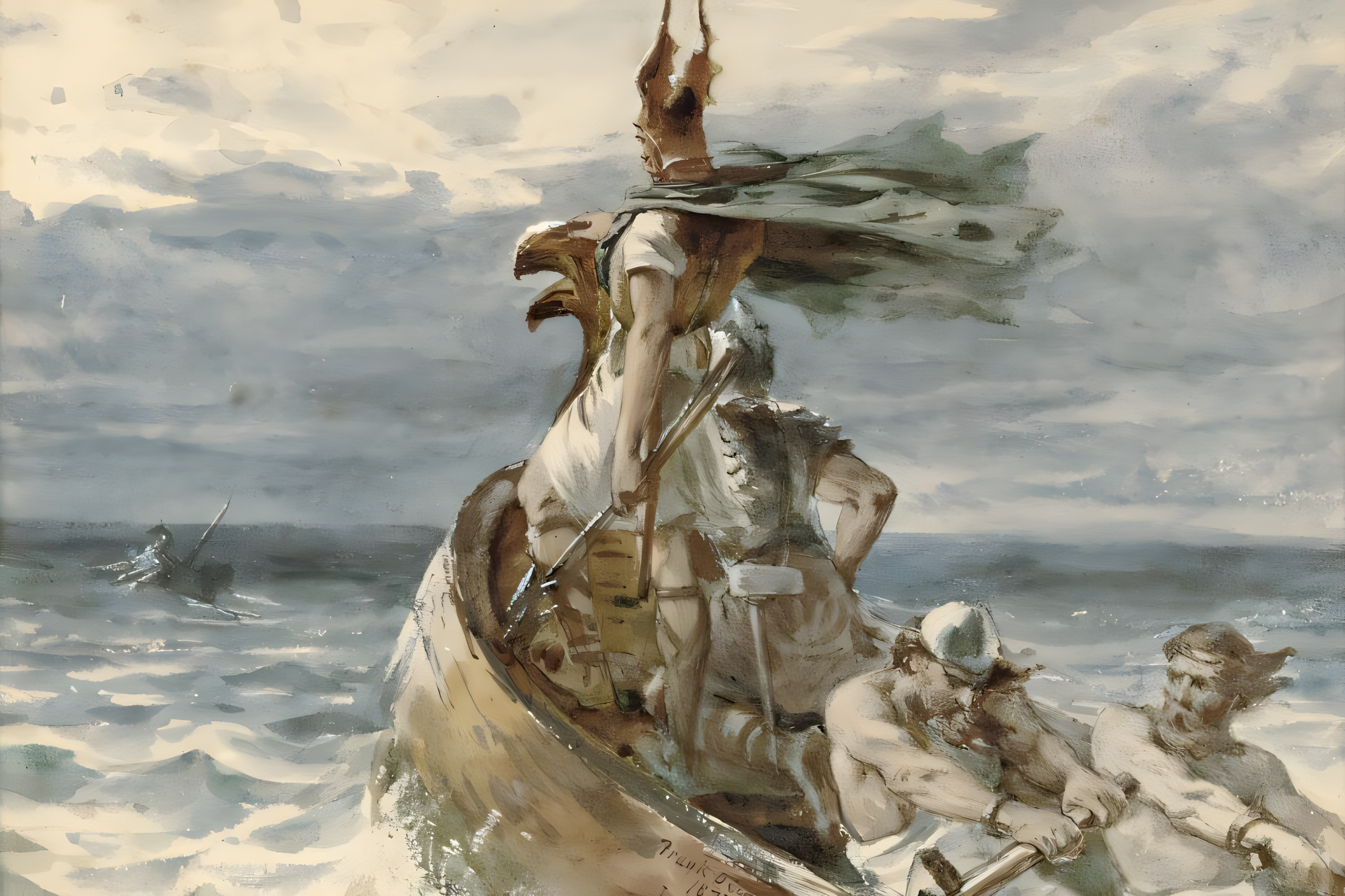 침략군에 대한 승리를 기념하기 위해, 지역 주민들은 침략군 무기를 배 한 척에 싣고 신들에게 제물로 바치기 위해 인근 늪에 가라앉혔다.