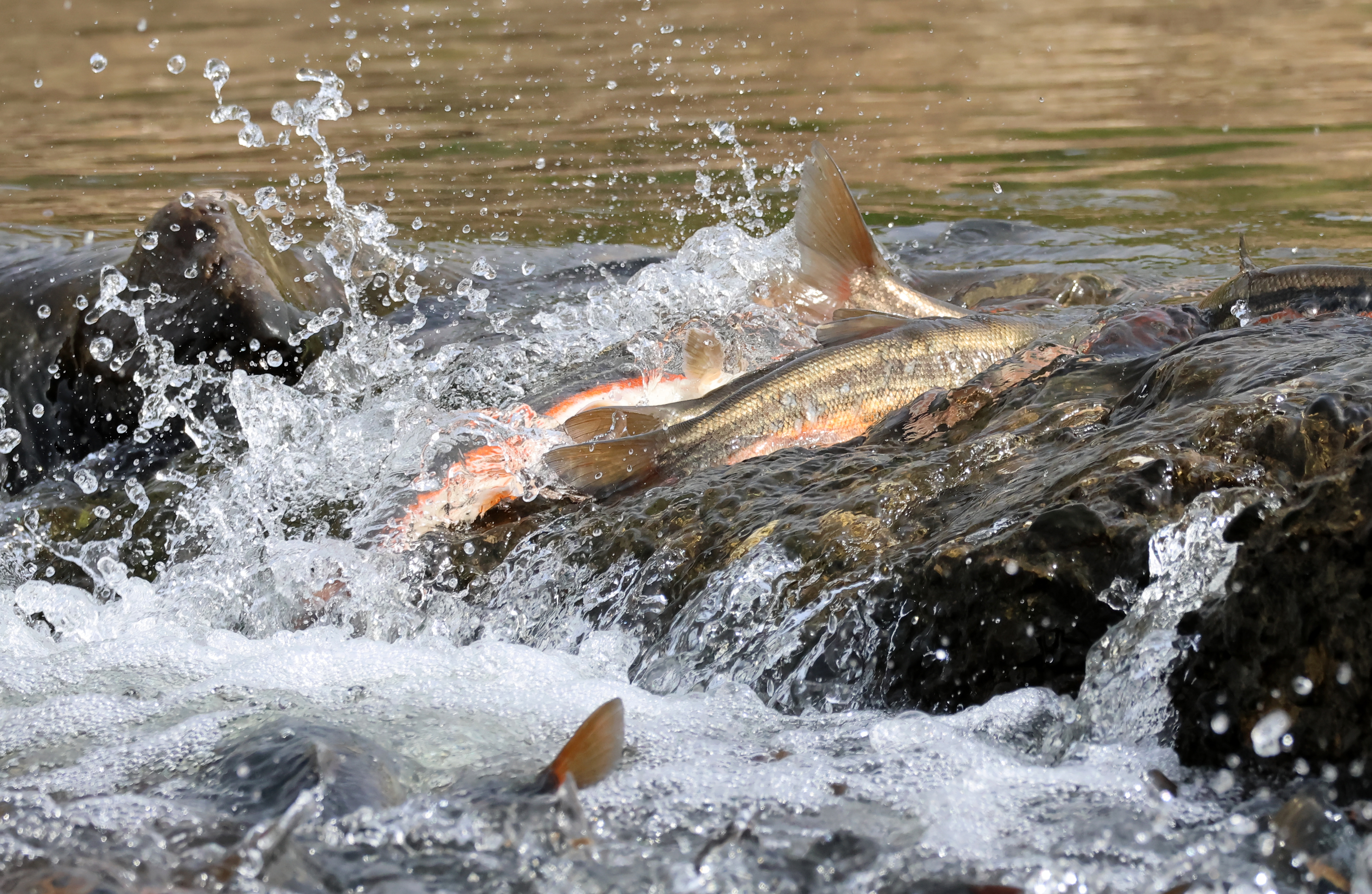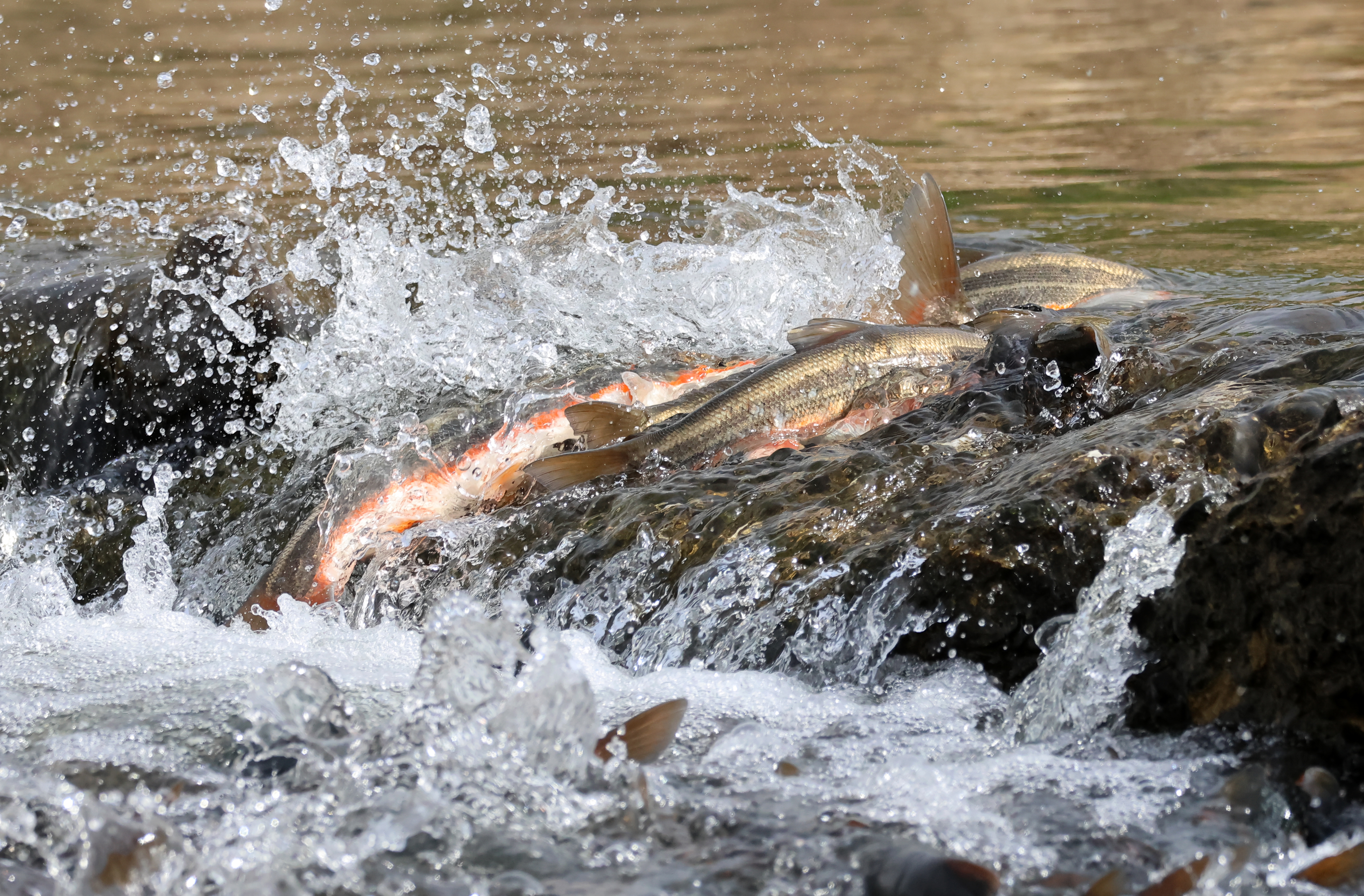 The river fish, called "hwangeo 황어" in Korean, live most of their lives in the sea after being born in a river, and return to the river to lay eggs in March and April.