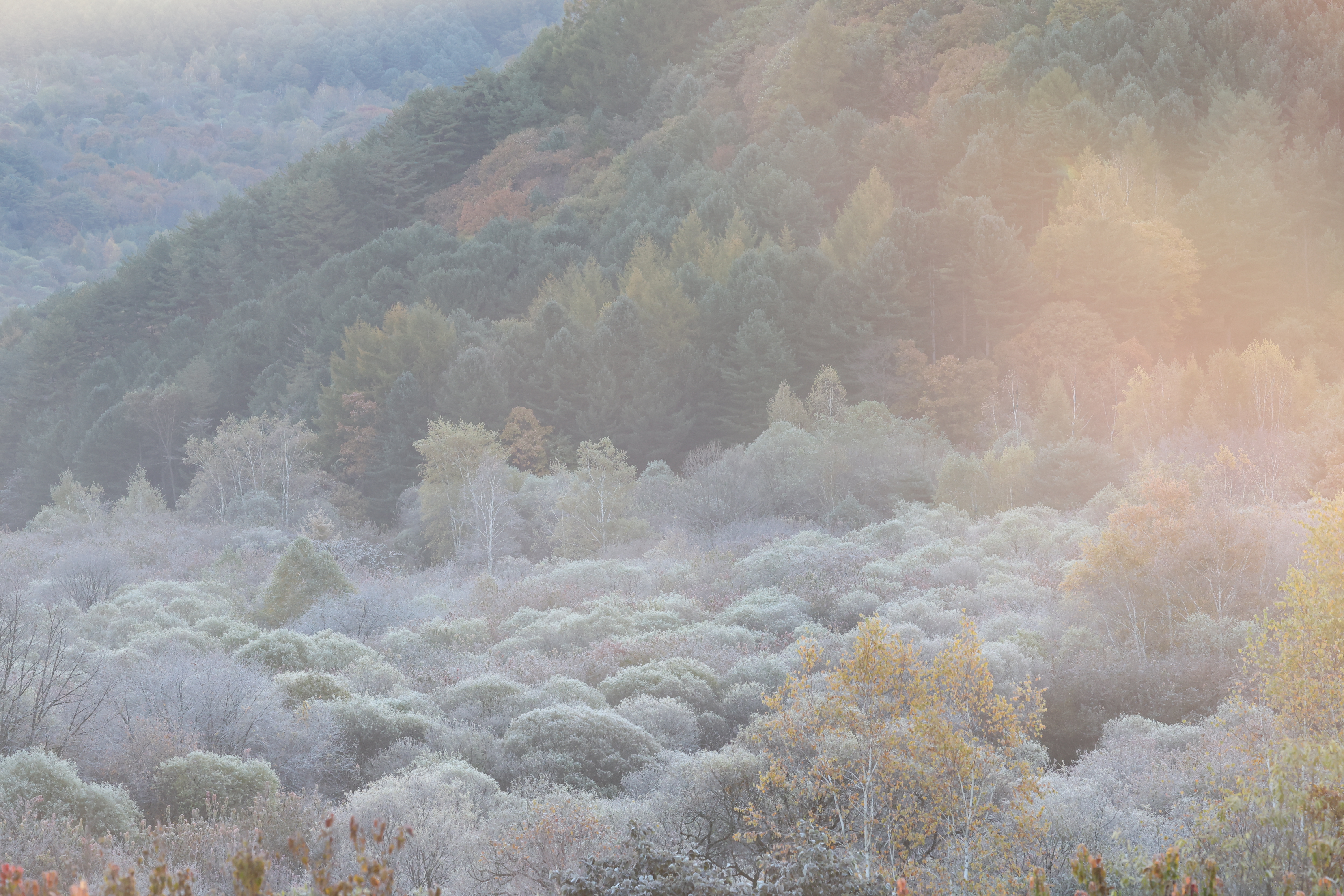 On the morning of the 22nd, when the cold continues throughout the country, people are taking pictures of fantastic scenery created by frost at the so-called Secret Garden in Gapdun-ri, Nam-myeon, Inje-gun, Gangwon-do, South Korea.
