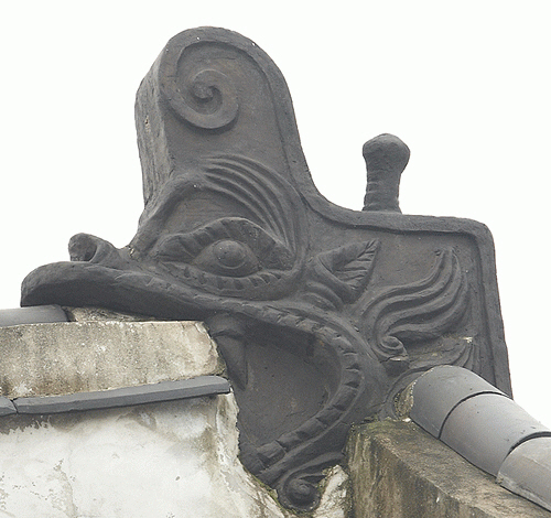 The Geompa was used practically to block the rainfall flowing into the Chuidu, and it is delivered that the biting of the dragon engraved on the Chuidu has the meaning of blocking the gnawing the ridge of the roof.