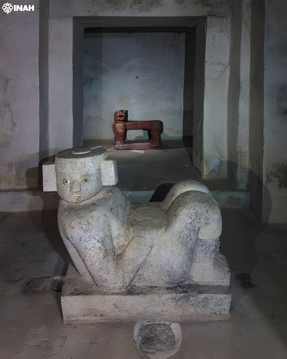 이 방들에서는 차크 몰Chac Mool 조각상과 붉은색으로 칠한 재규어 왕좌jaguar throne라는 놀라운 유물들이 발견되었다.