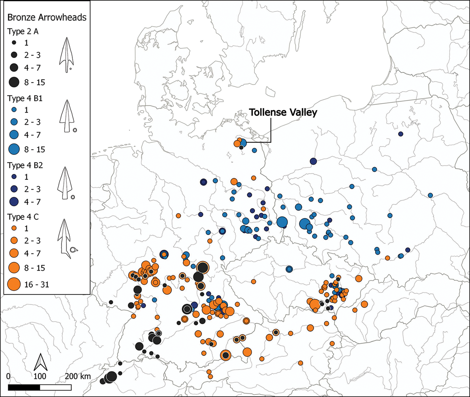 "이는 톨렌세 계곡 전투원 중 적어도 일부는 이러한 유형 화살촉이 널리 분포하는 바이에른Bavaria이나 모라비아Moravia와 같은 남부 중앙 유럽 먼 지역에서 왔을 가능성을 시사합니다."