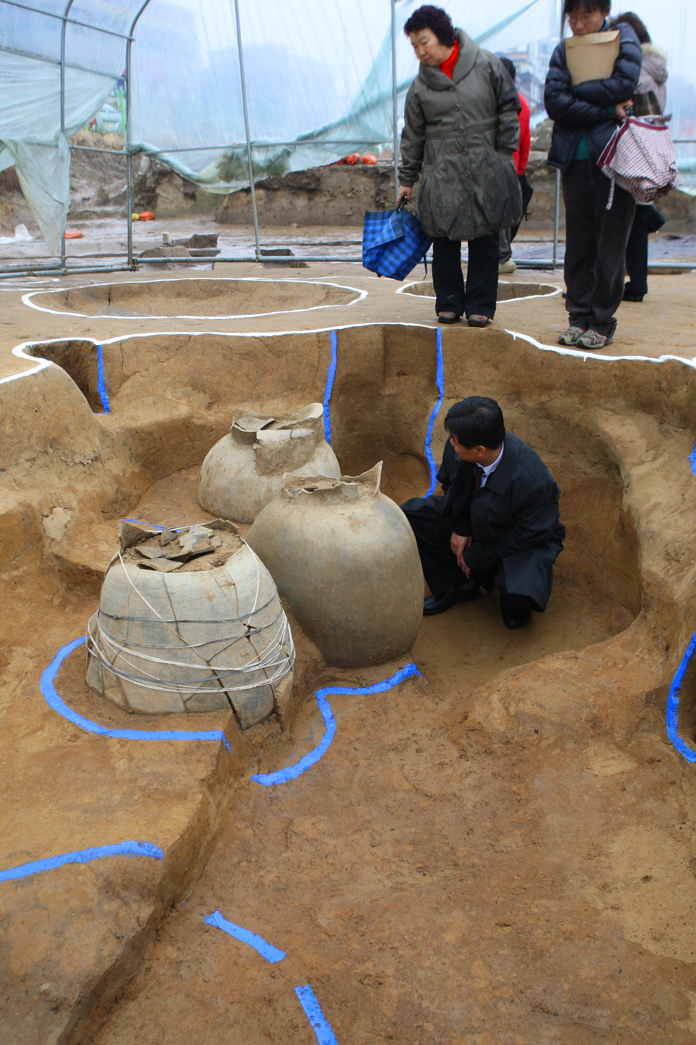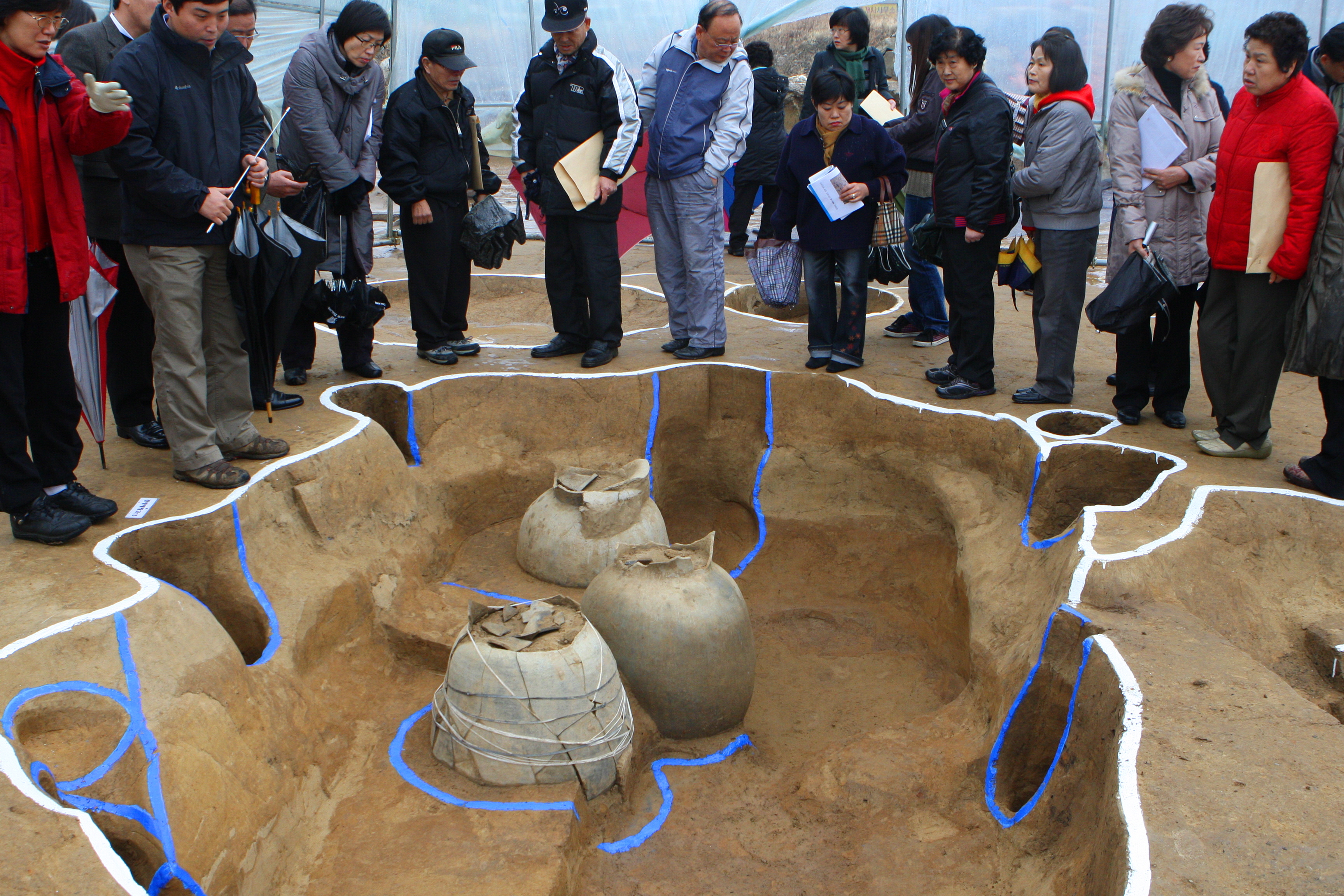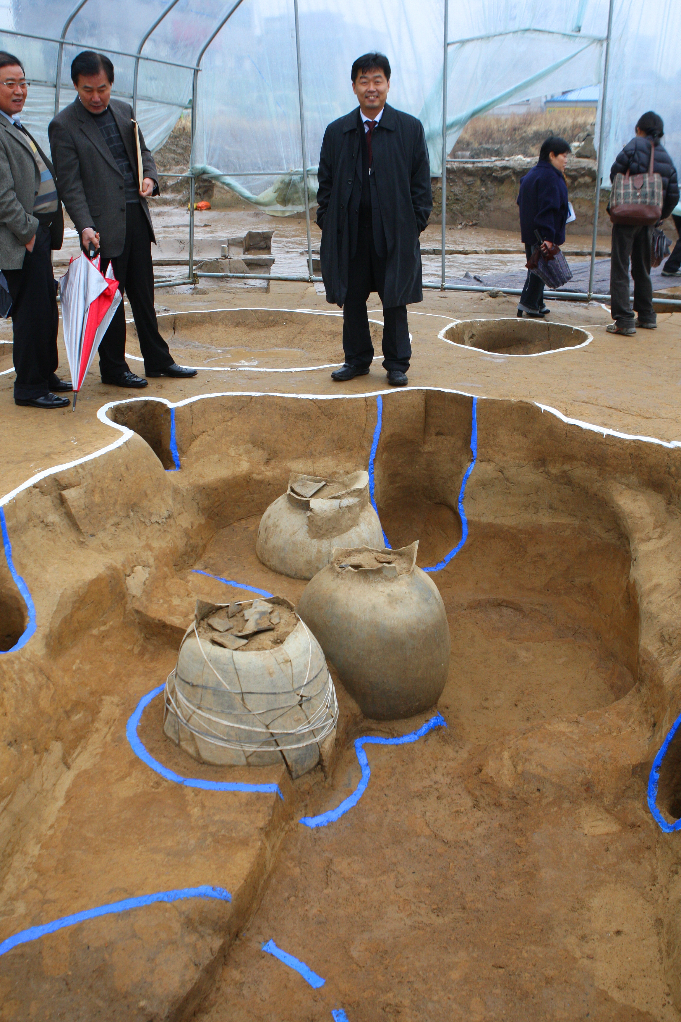 2008년 11월, 풍납토성 미래마을지구 다-38호 수혈에서 드러난 한성백제시대 대옹 3점.
