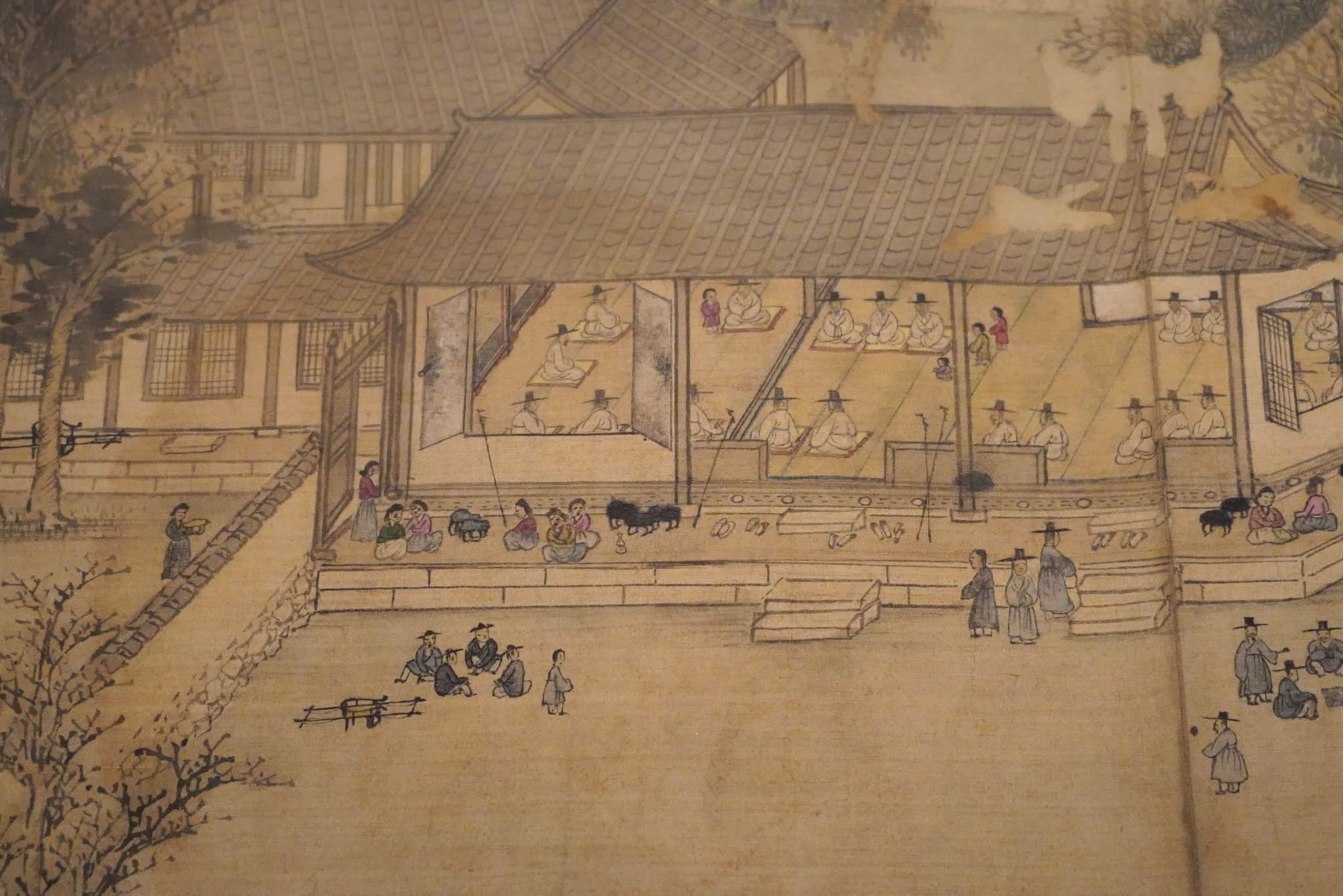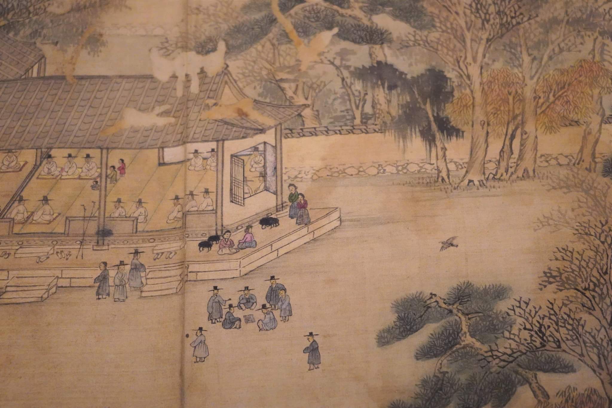 This painting portrays a gathering of the era, providing an image of both the home of a yangban and some of the customs of the early 18th century.