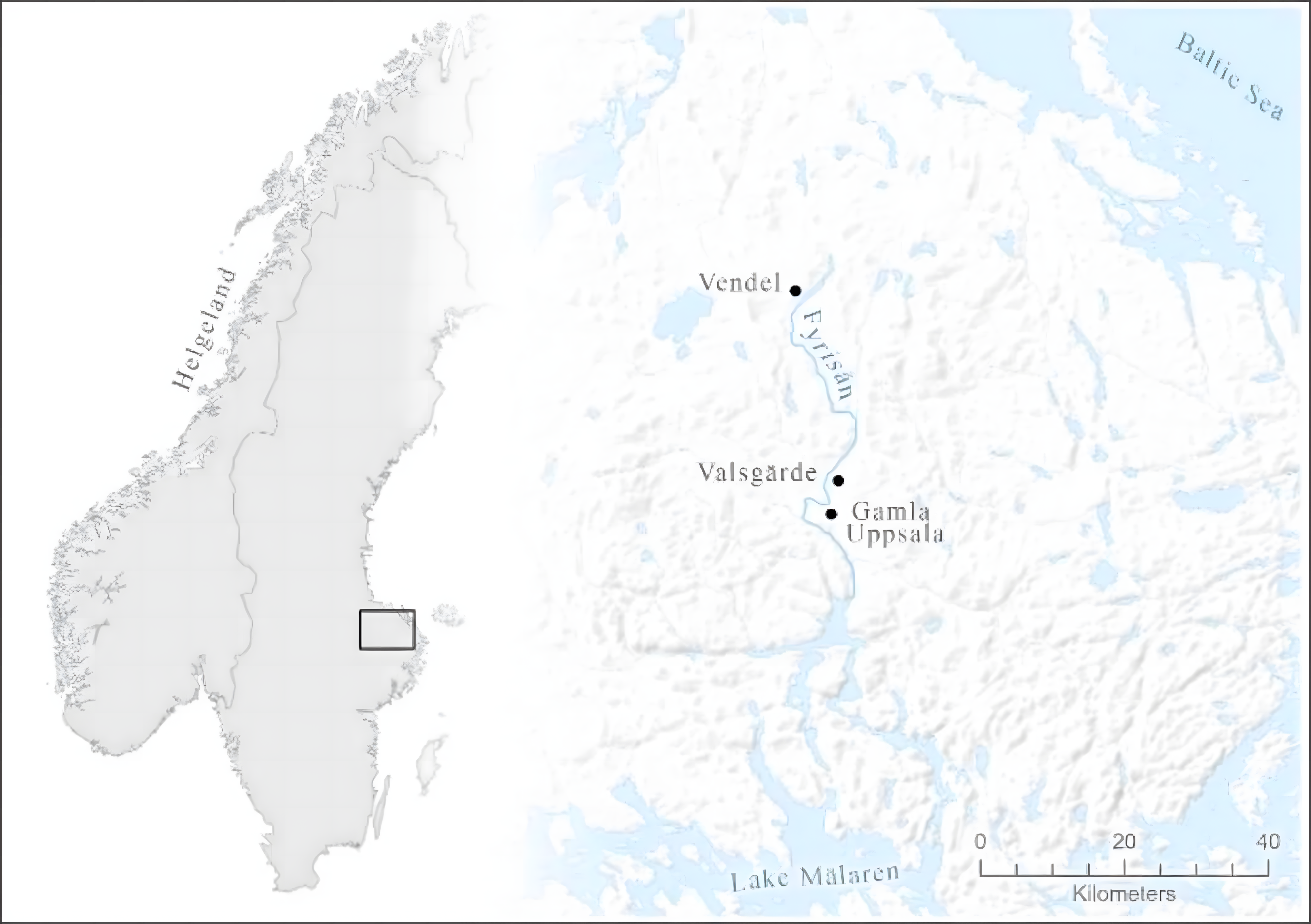 스웨덴 중부 웁살라Uppsala 인근 발스가르드 공동묘지Valsgard Cemetery는 서기 600년에서 700년 무렵에 만든 배 무덤ship tombs으로 유명하다.