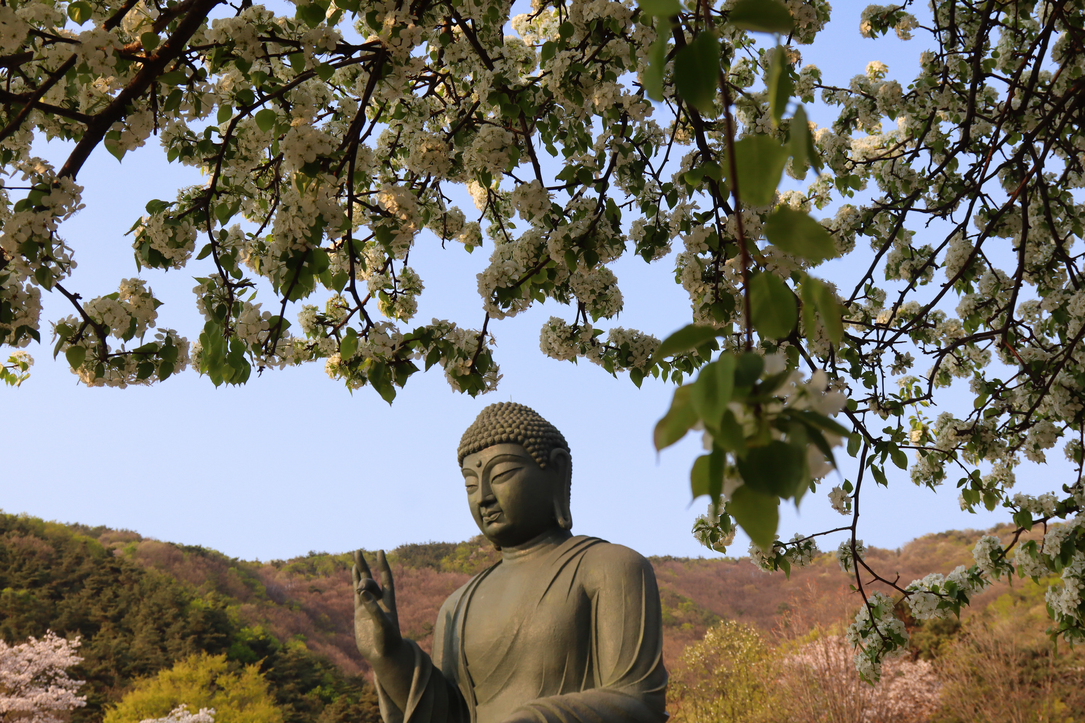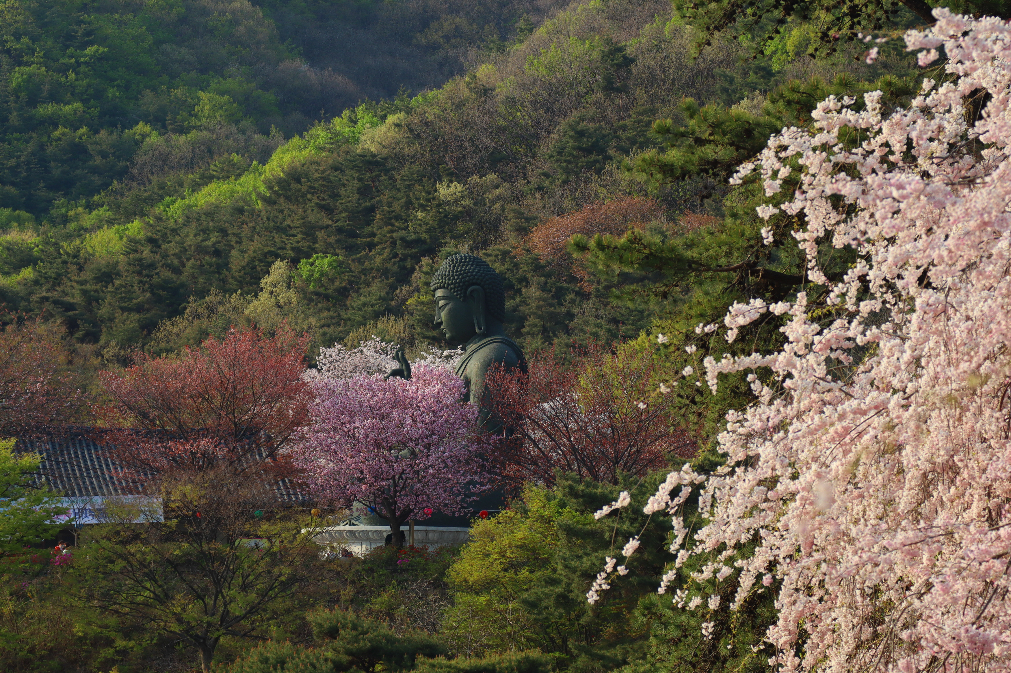 CHEONAN, April 11 (Yonhap) — The warmth of spring was evident as flowers fully bloomed around the foot of the Seonggeosan Mountain in Cheonan. Buddha also seemed to be in a good mood for the flower of ...