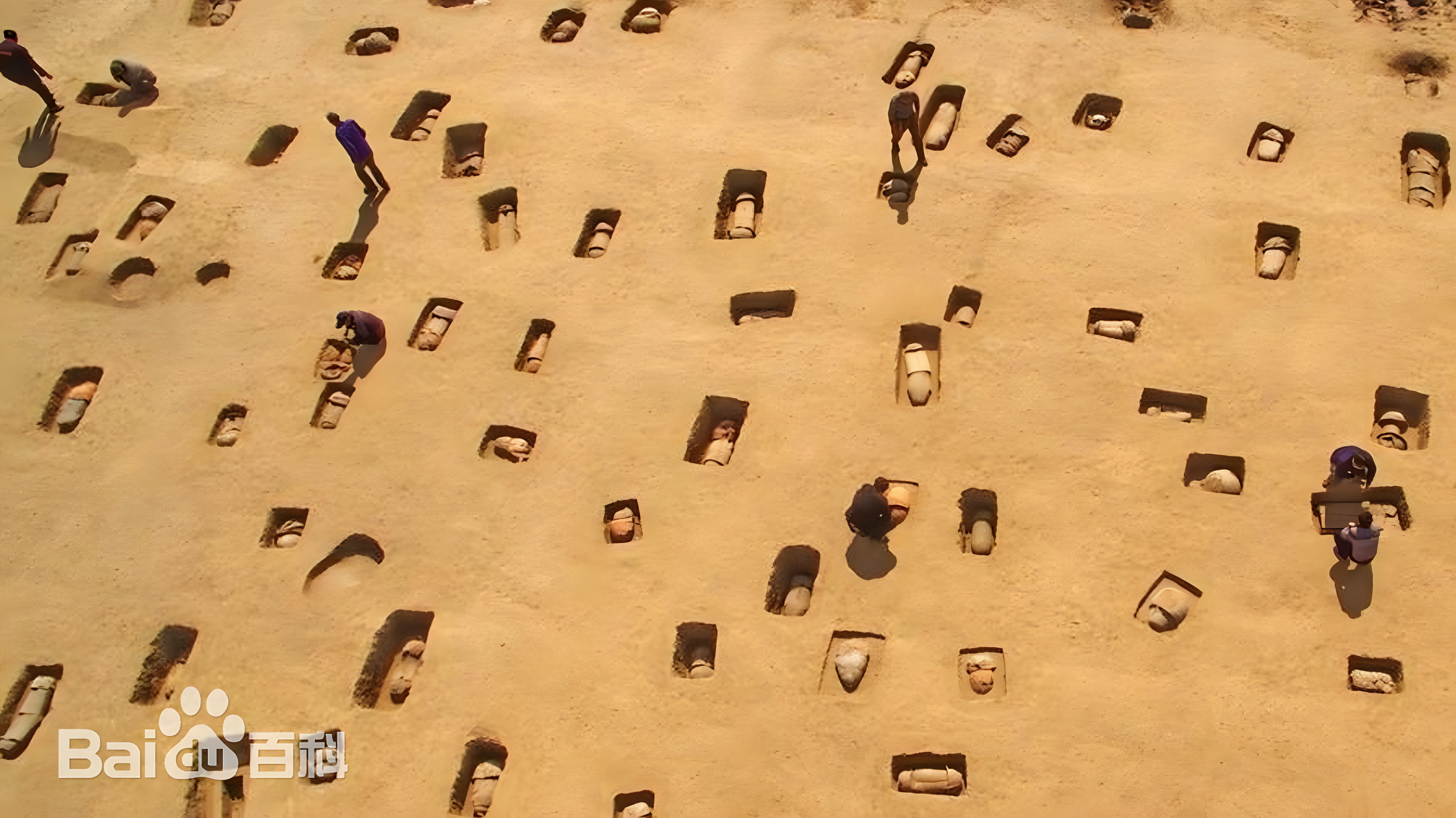 유적의 항아리 매장지[옹관장瓮棺葬, 옹관묘]는 전국시대 말기(기원전 475년~기원전 221년)부터 서한 초기(기원전 202년~기원후 8년)까지 것으로 추정한다.
