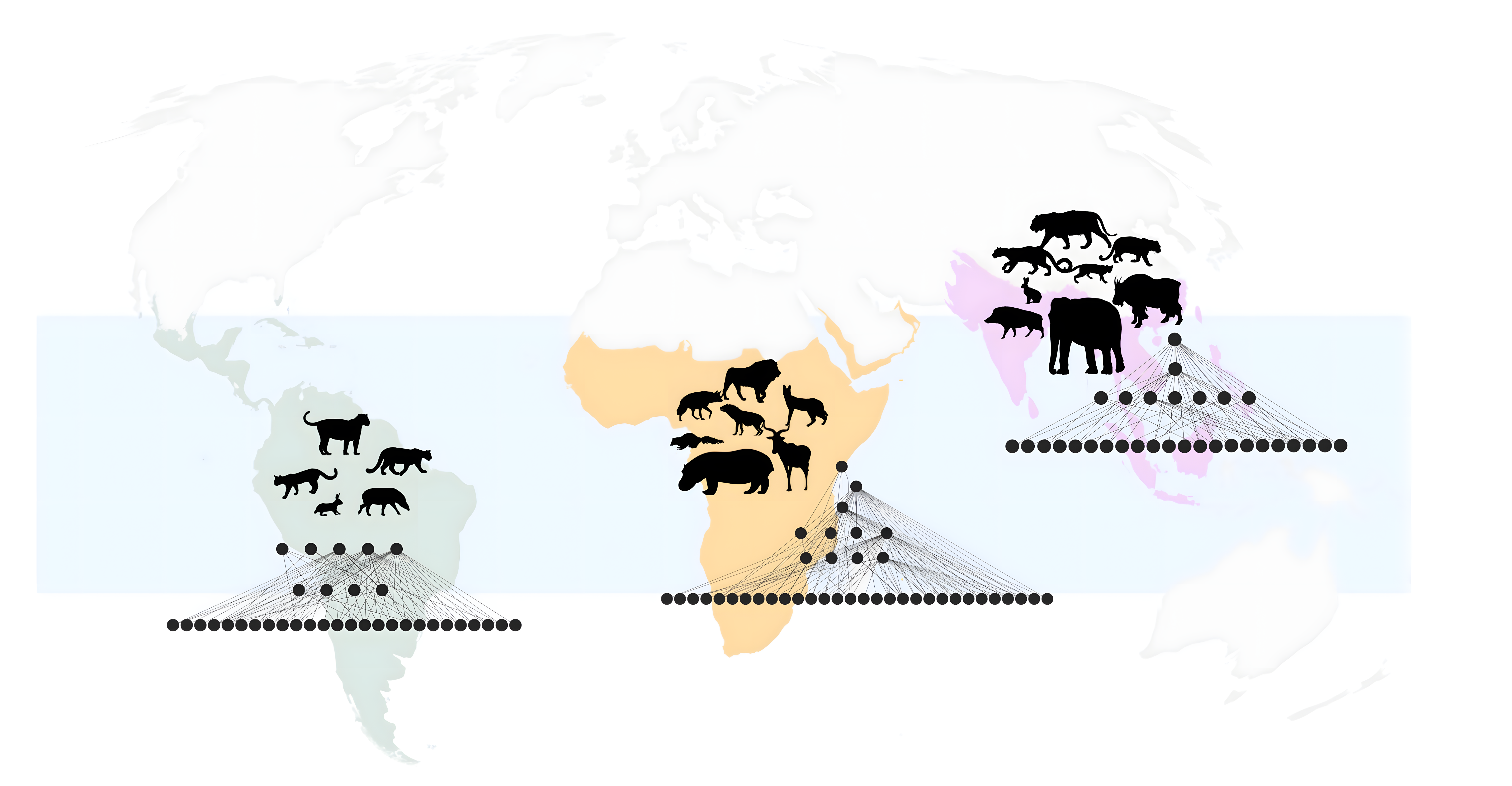 CITATION: "Historical legacies shape continental variation in contemporary mammal food webs," Chia Hsieh, Evan C. Fricke, Wei-Hao Lee, Daniel Gorczynski, Lydia Beaudrot. Proceedings of the National Academy of Sciences, April 27, 2026. DOI: 10.1073/pnas.2519938123
