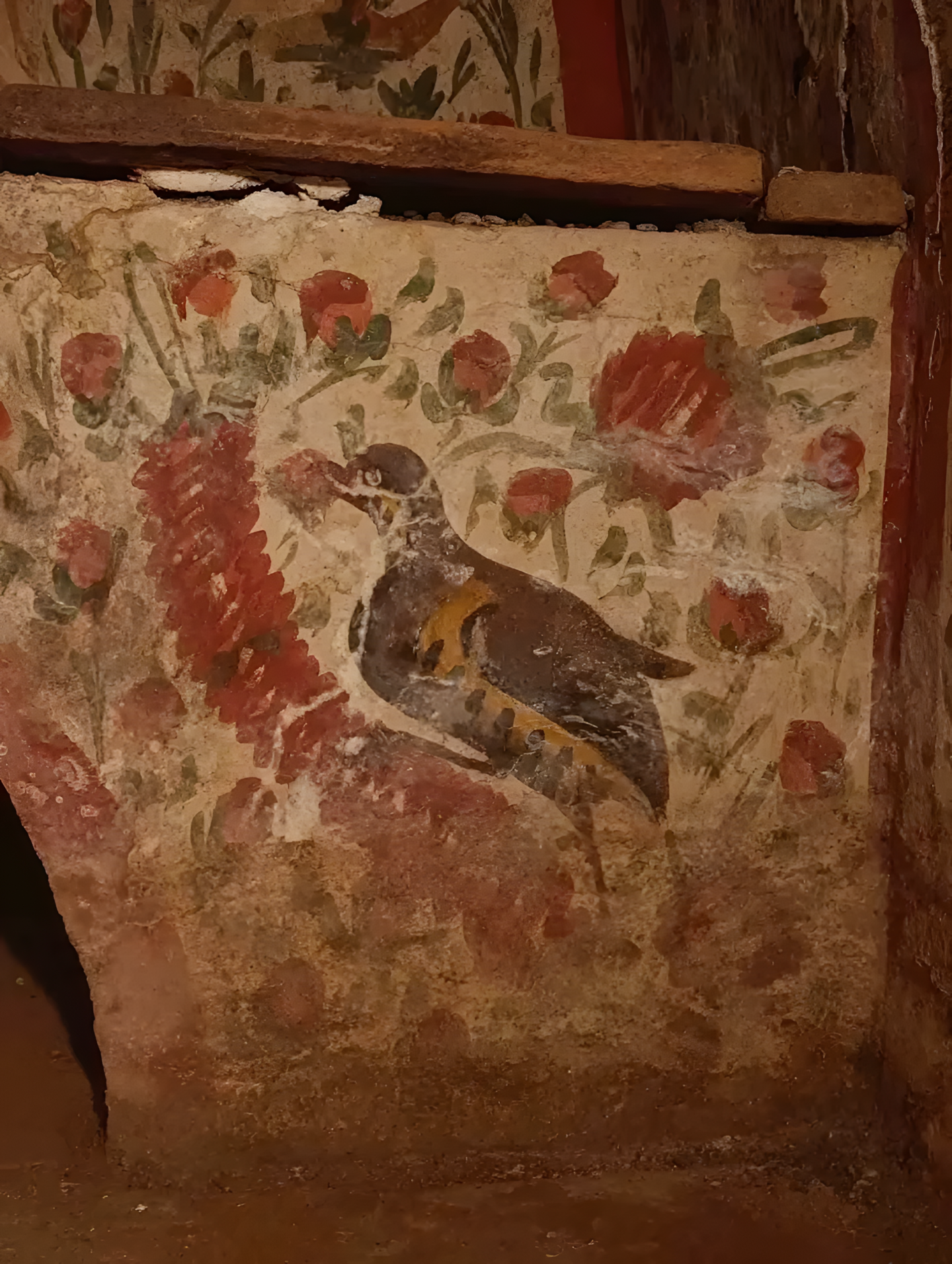 3세기로 추정되는 이 지하 무덤은 세 벽면과 천장을 덮은 프레스코화가 놀라울 정도로 잘 보존되고 인물이 묘사된 드문 사례로 이 지역 다른 채색 무덤들 중에서도 특히 돋보인다. (Turkey Today)