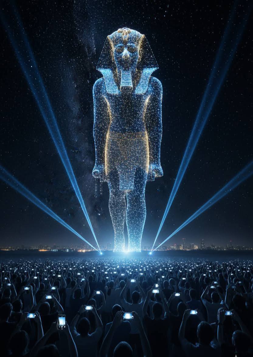 개막식 역시 이런 파라오 재림의 결정판이었다. 개막 공연자들은 파라오 의상을 입고 이마에 금빛 화환과 홀을 꽂은 채 전통 음악을 연주했고, 파라오와 불꽃놀이가 박물관 위 밤하늘을 수놓았으니 말이다.