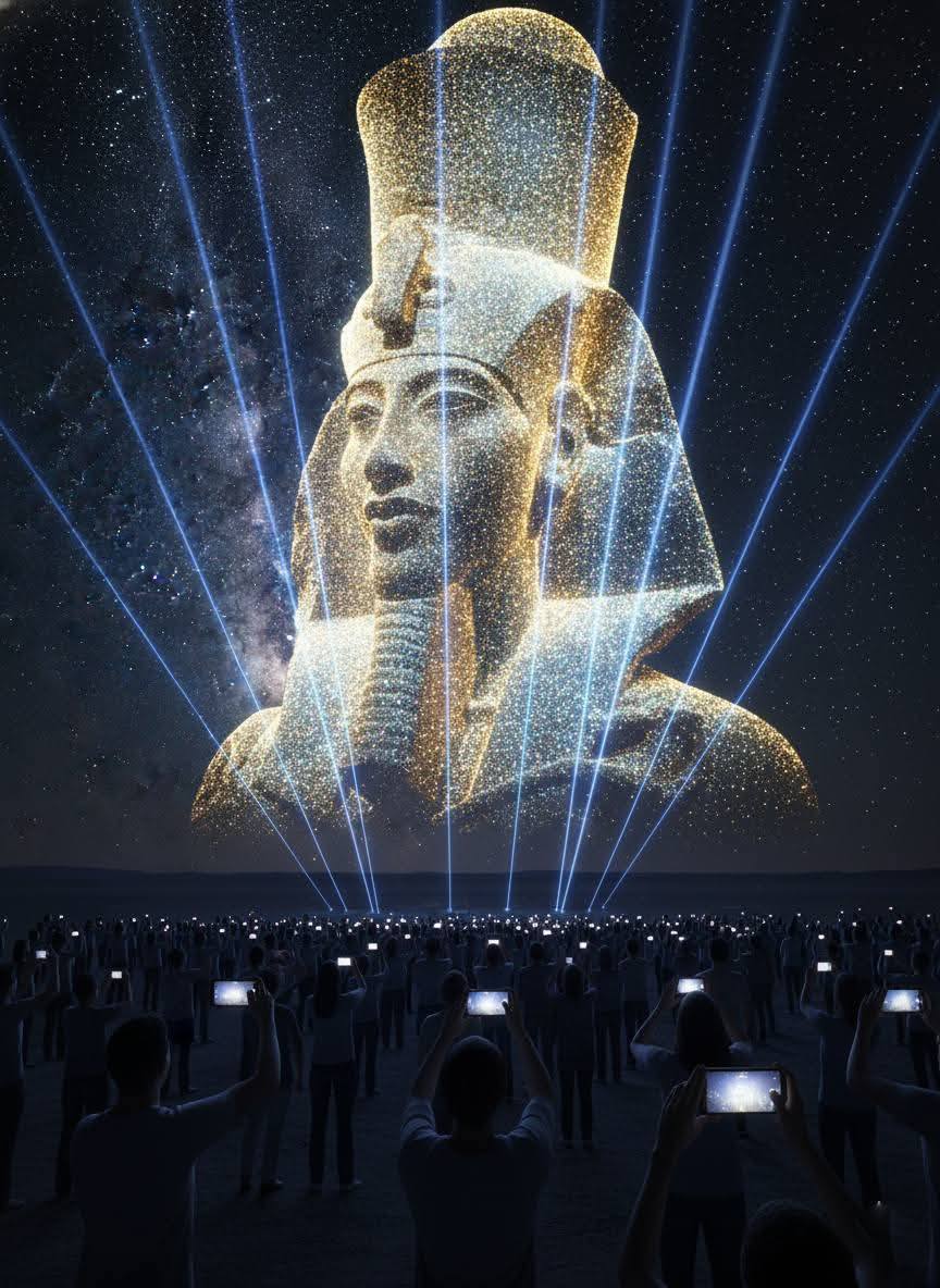개막식 역시 이런 파라오 재림의 결정판이었다. 개막 공연자들은 파라오 의상을 입고 이마에 금빛 화환과 홀을 꽂은 채 전통 음악을 연주했고, 파라오와 불꽃놀이가 박물관 위 밤하늘을 수놓았으니 말이다.