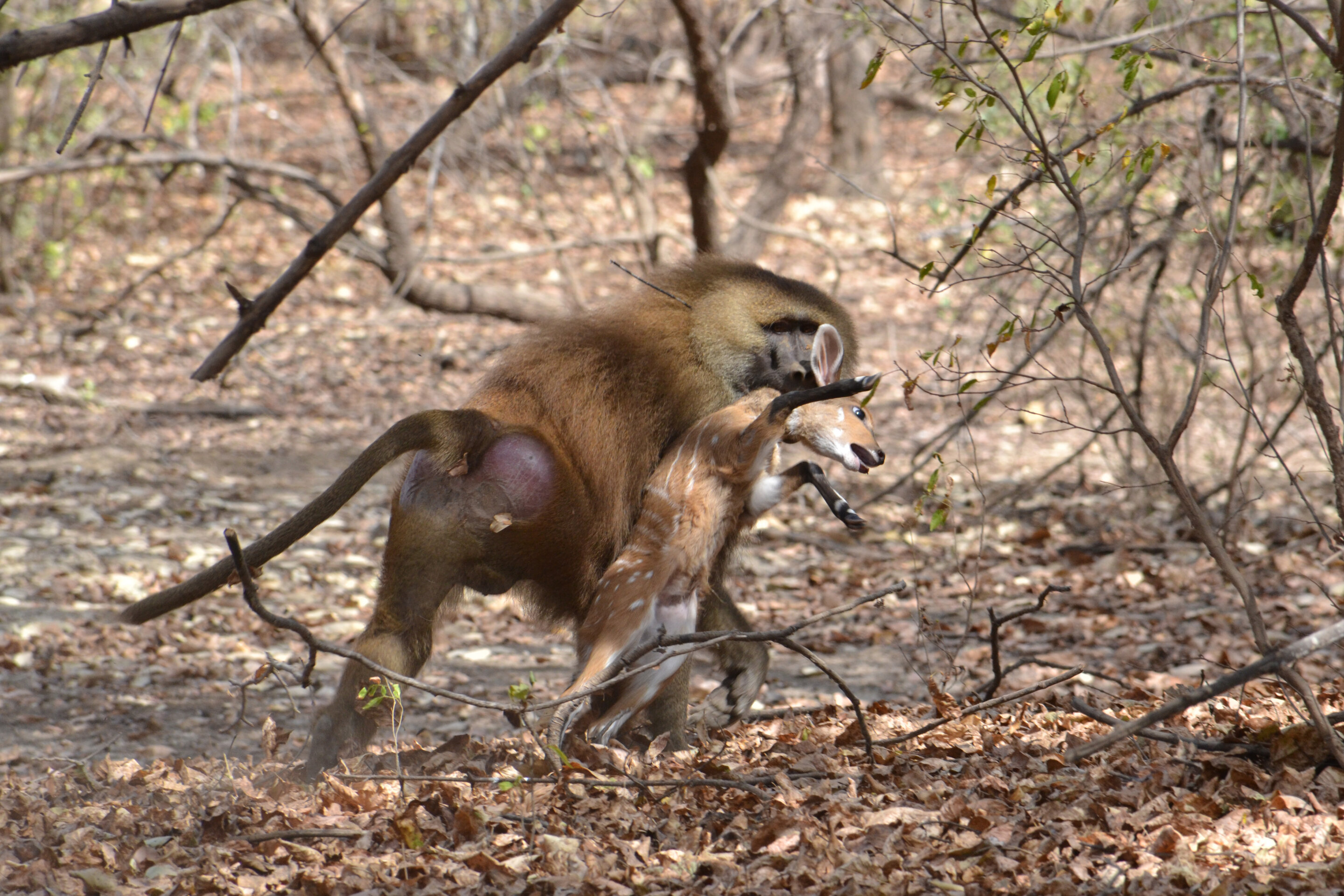 독일 영장류 센터German Primate Center (DPZ)-괴팅겐 소재 라이프니츠 영장류 연구소Leibniz Institute for Primate Research 연구원들이 인간 수렵채집 사회와 유사한 패턴에 따라 고기를 분배하는 기니개코원숭이Guinea baboons (Papio papio) 사례를 통해 이를 발견했다.