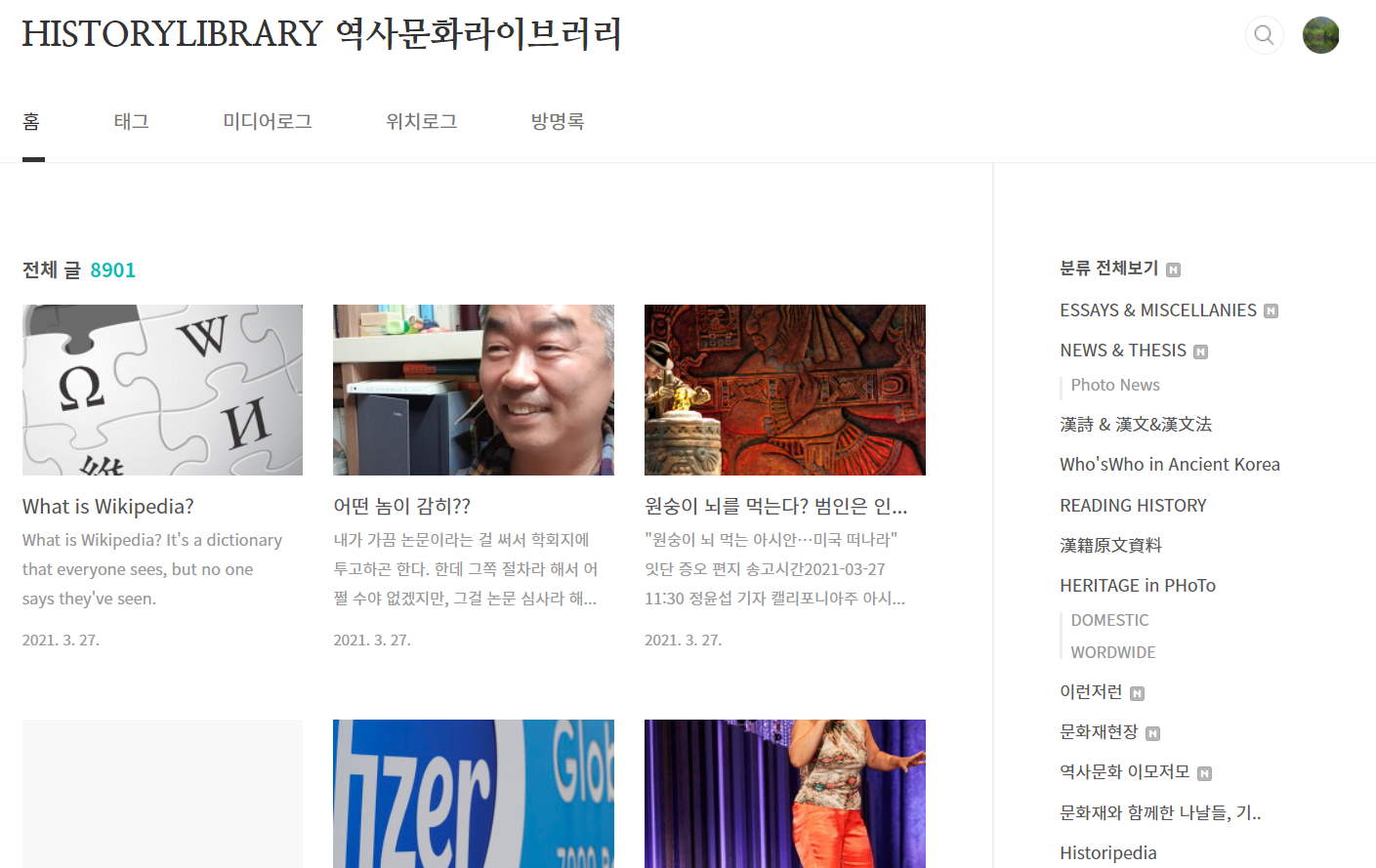 어떤 분이 역사문화라이브러리가 무엇을 추구하는지 묻는 사람이 있던데 나는 잡탕이라 말하고 싶다. 무엇에의 잡탕인가? 이런저런 세상 돌아가는 이야기의 잡탕이며, 그럼에도 그 줄기는 거개는 역사문화 쪽이라 하고 싶지만, 이것도 내 관심이 어느 한쪽에 고정하는 것은 아니어서 그런 것들을 중심으로 하는 세상돌아가는 이야기 모음집이라 하고 싶다.