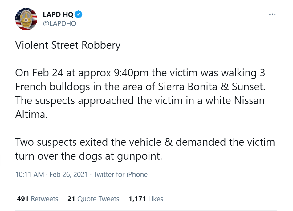 그나저나 우리 경찰이나 법조계에도 언론보도 예상 사건 판결 이런 게 있는데, 이짝에서도 그런 일이 없을 수는 없어 LAPD 트위터 계정을 살피니 이 사건 업데이트 소식이 많다.