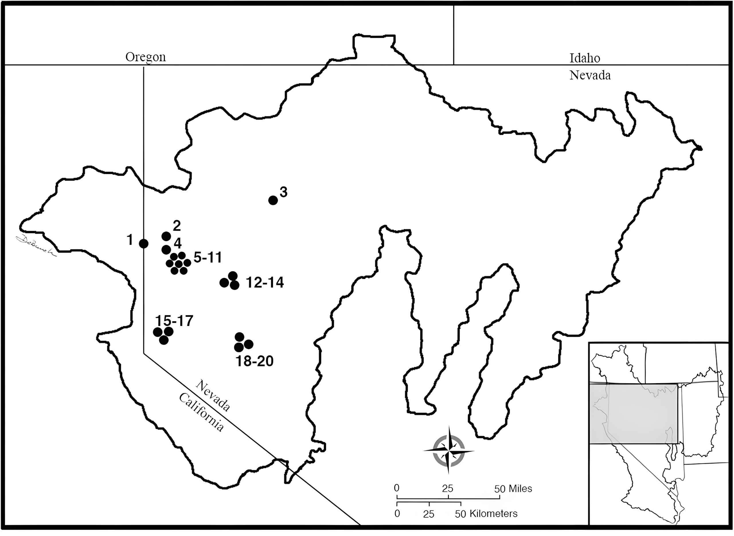 라혼탄 하류 유역(LLDB)과 보니빌 분지(BB)는 북미 서부, 캐나다와 멕시코, 로키산맥 전면 산맥Rocky Mountain Front Range, 캐스케이드/시에라 산맥Cascade/Sierra ranges 사이에 위치한 인터마운틴 웨스트Intermountain West 지역에 있다.