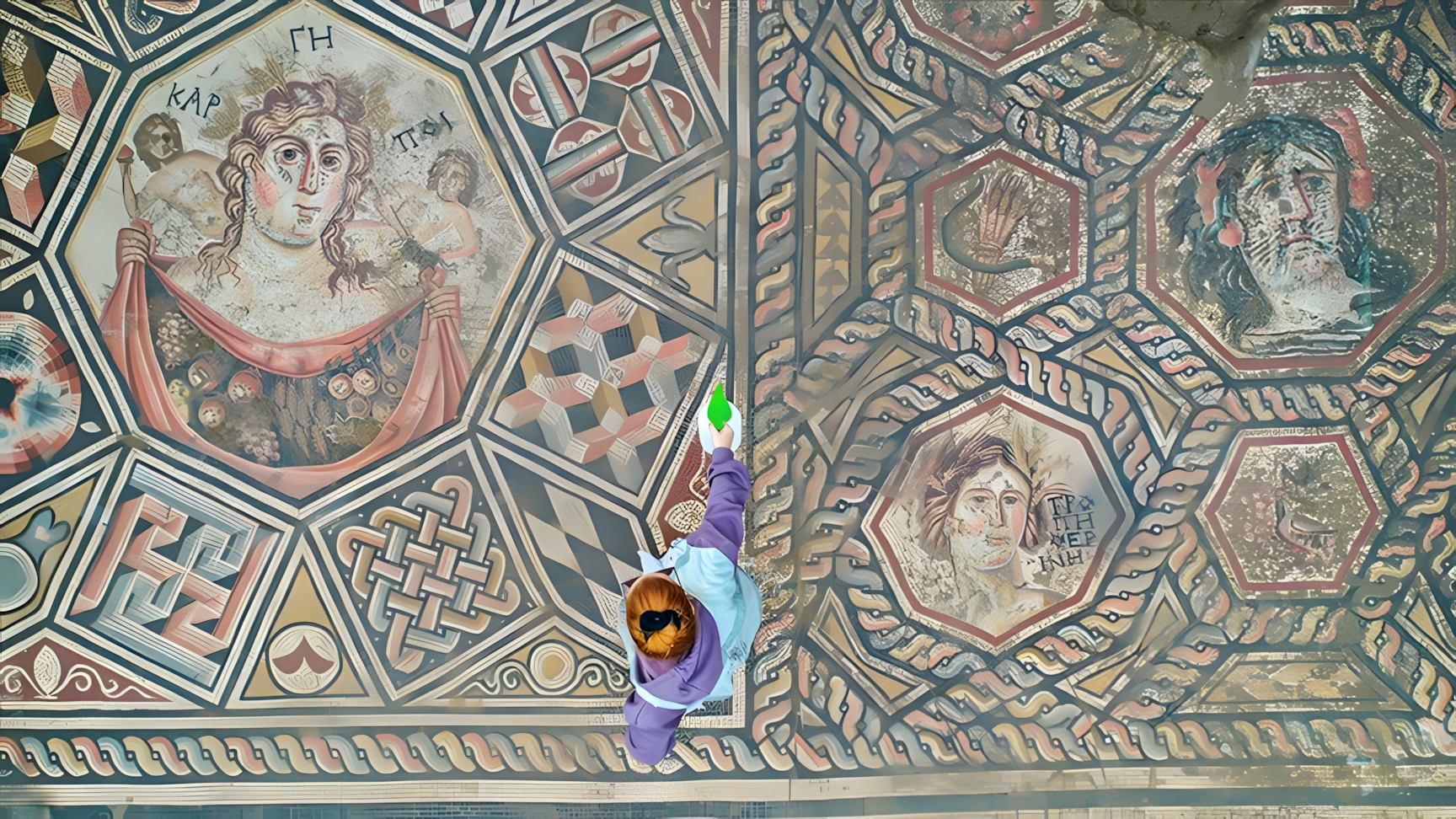 하지만 모자이크에서 가장 놀라운 요소는 중앙 패널에 있다.
