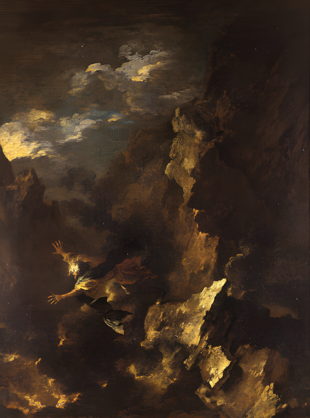 에트나 산에서 불에 타 죽는 대신, 화산 폭발로 하늘로 솟아오른다.