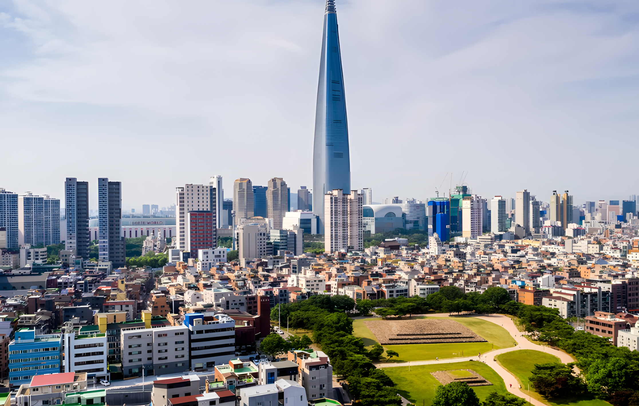 저 롯데월드타워 전망대에 서면 풍납토성 몽촌토성 석촌동고분군, 그리고 방이동고분군까지 한 눈에 조망한다.