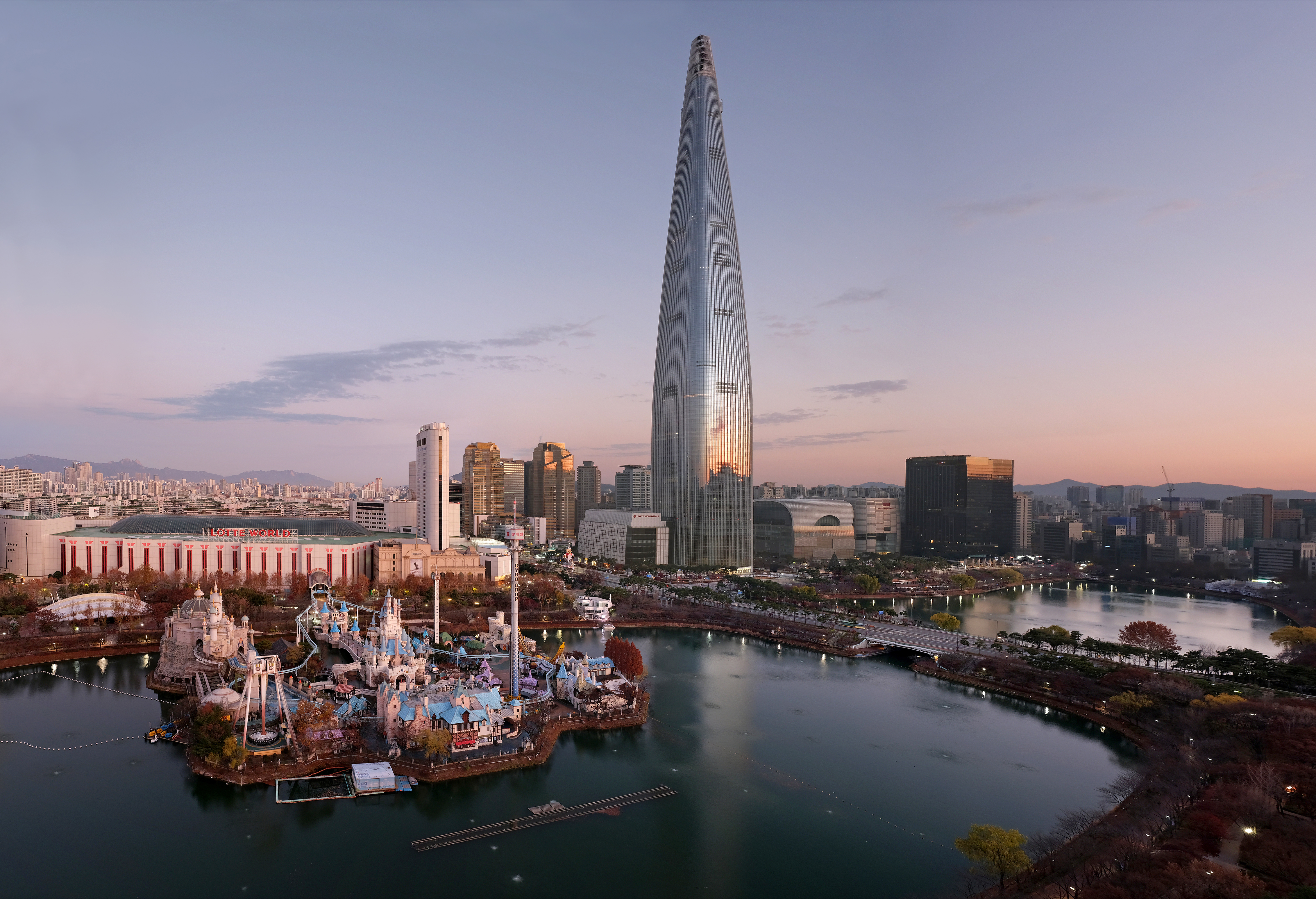"롯데월드타워(영어: Lotte World Tower 또는 줄여서 롯데타워(영어: Lotte Tower)는 대한민국 서울특별시 송파구 올림픽로 300에 위치한 마천루이다. 지상 123층, 높이가 무려 555m까지 된다. 2010년에아 착공을 시작하여 2016년 12월 22일 134층까지 상량 완료했으며, 2016년 3월경 첨탑공사가 완료됨으로써 외장 공사가 완료되었고, 2016년 12월 22일에 완공된 후 2017년 4월 3일에 개장하였다."(위키피디아 전재)