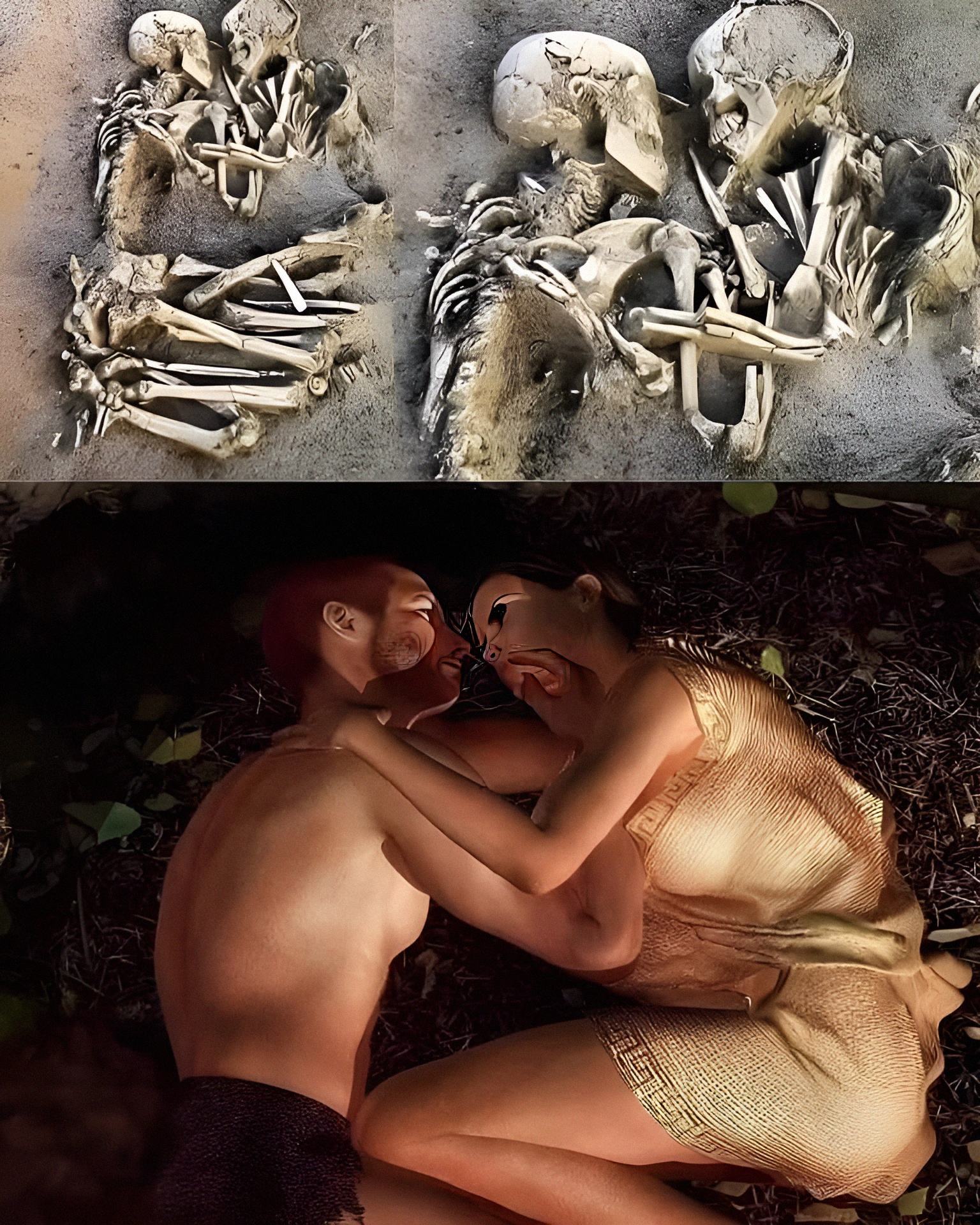 이른바 “발다로의 연인들 Lovers of Valdaro” 이라 일컫는 신석기시대 이 젊은 남녀 부둥켜 뽀뽀 해골은 2007년 이태리 롬바르디 북부 지역 만투아 Mantua 라는 데서 발굴 공개되어 화제를 뿌렸다.