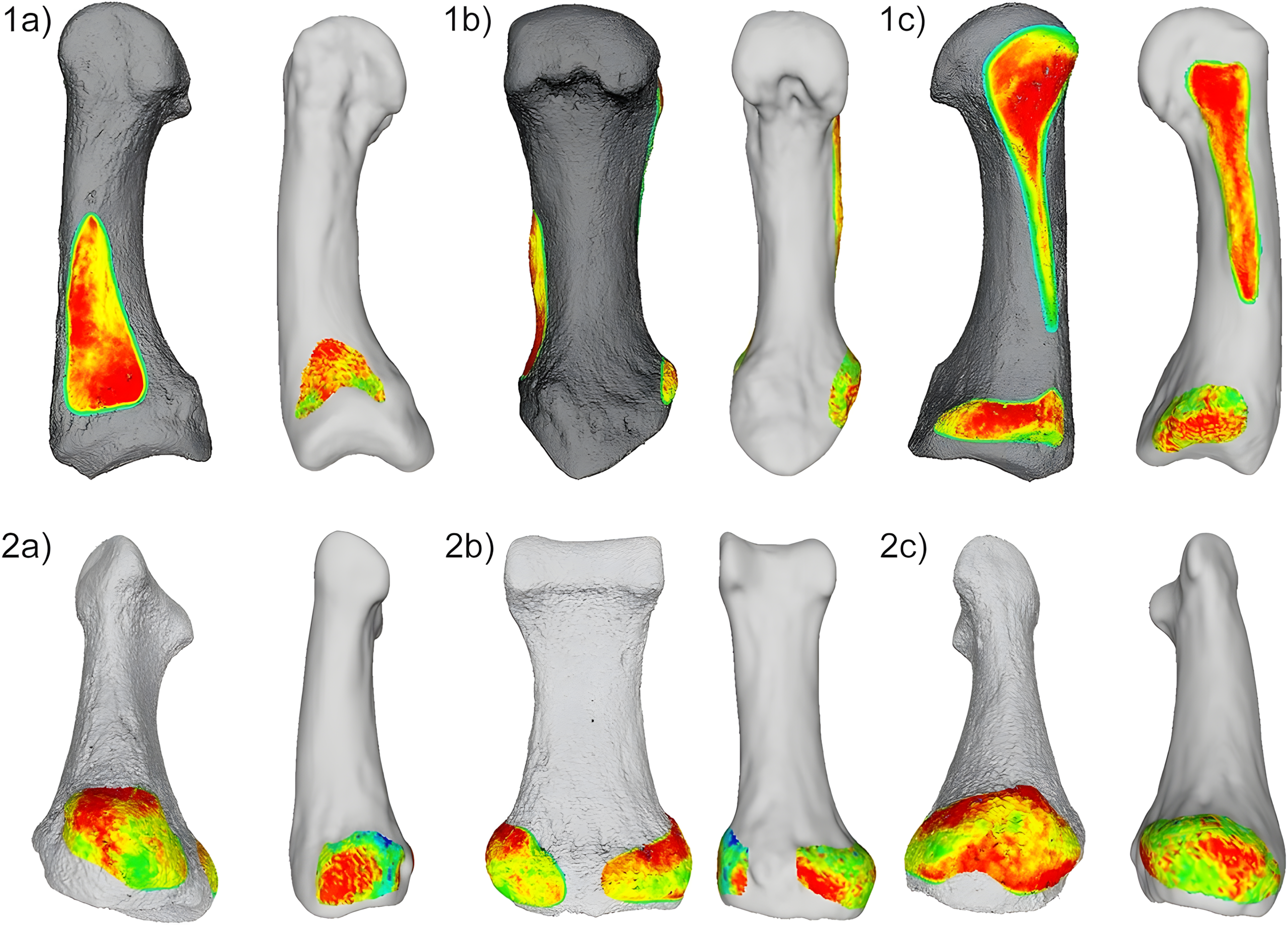 이 연구는 3D 모델을 사용하여 손뼈의 생체역학을 재구성하고, 손의 사용 방식을 이해하기 위해 엔테시스entheses (근육 부착 부위)를 분석했다.