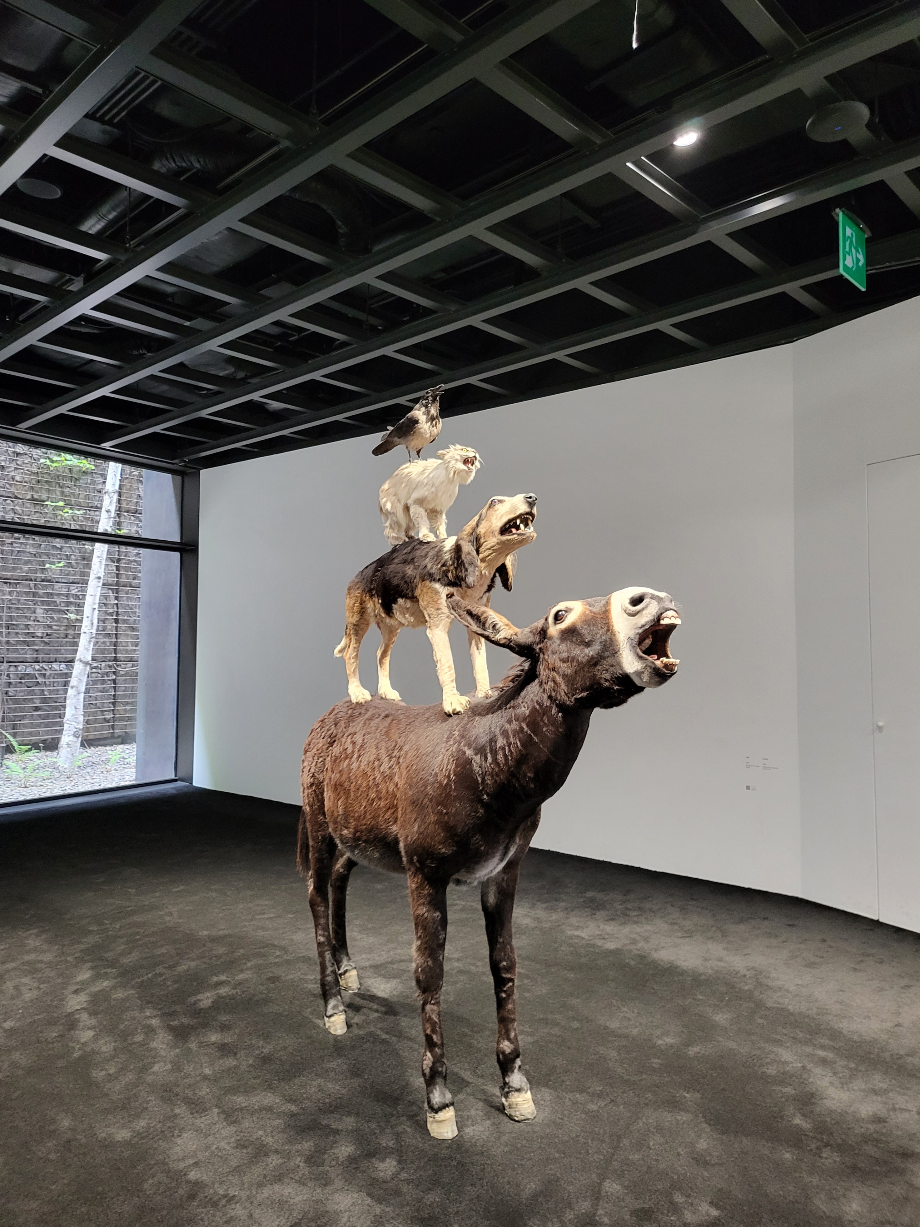 전시장 도처에서 우리를 응시하는 수많은 카텔란은 침입자, 경찰, 사제, 범죄자, 예술가, 소년을 능숙하게 연기하며 비관적이고 우울하며 냉소적인 카텔란판 인간 희극으로 우리를 초대한다.
