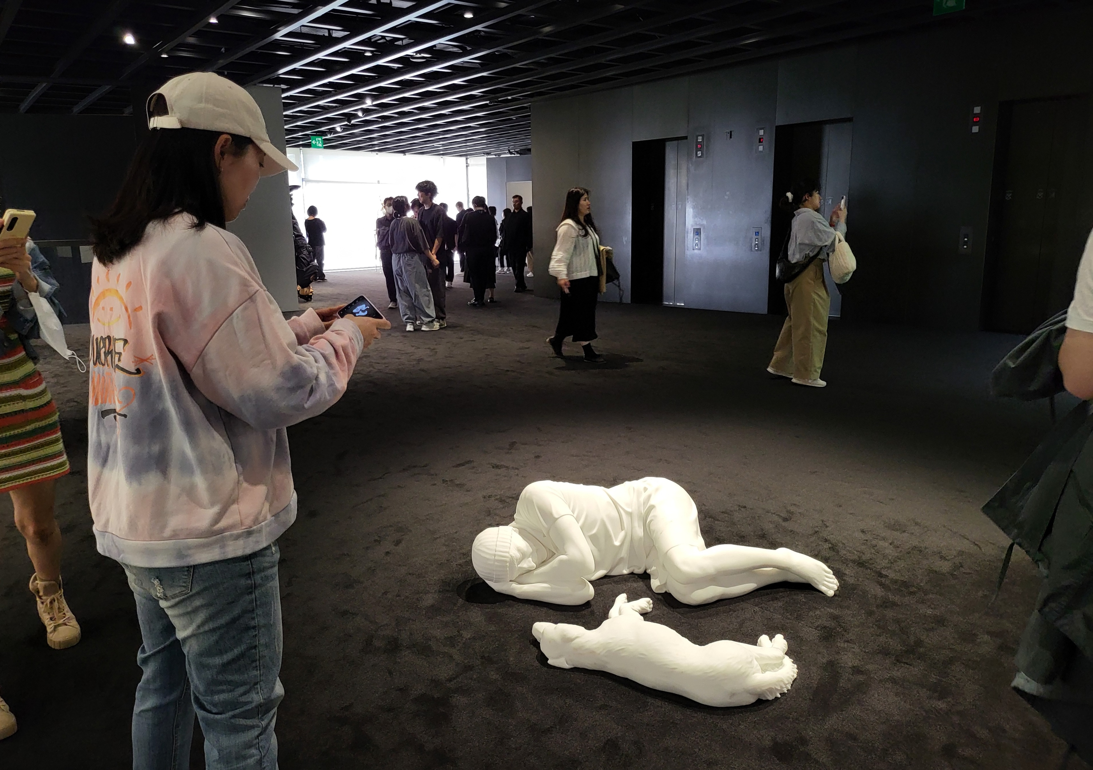 The nine Carrara marble sculptures reminiscent of corpses (All, 2007) commemorate and remind us of a recent tragedy nearby, circling us back to our stark realities and gently touching our lives.