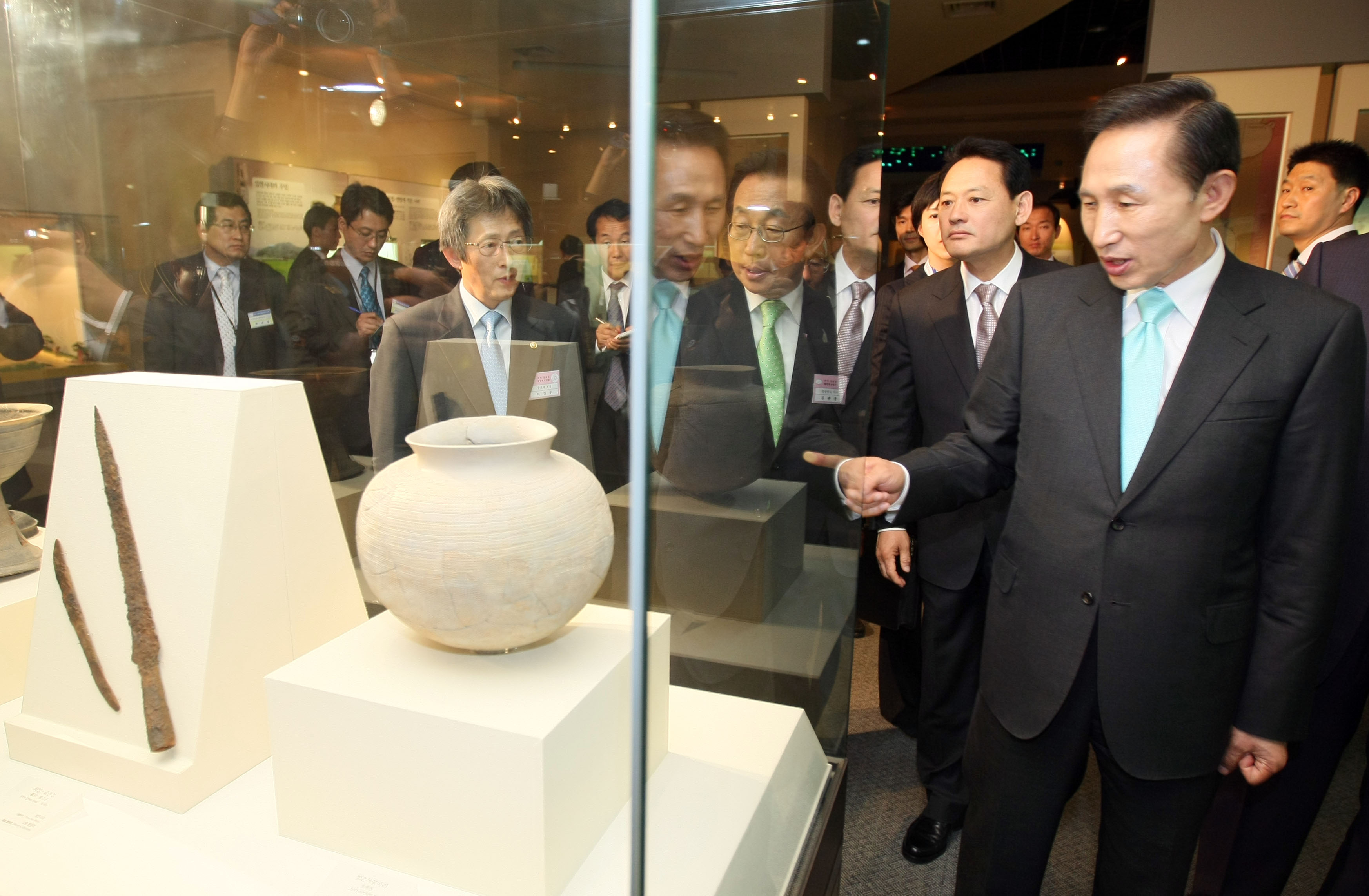지역 관광진흥이라는 그럴 듯한 회의를 대가야박물관 대회의실에서 주재할 예정이던 MB는 그에 앞서 박물관 정문에서 내려 환영 나온 지역민들과 악수하고는 박물관 내부를 관람할 예정이었다.