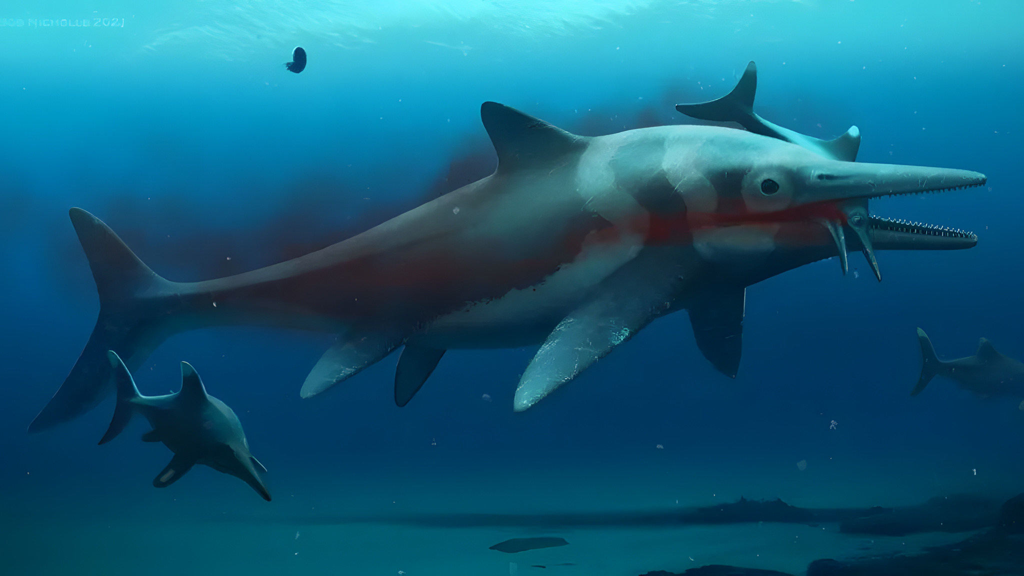 어룡Ichthyosaurs은 쥐라기 시대 바다 먹이 사슬 최상위에 있었다.