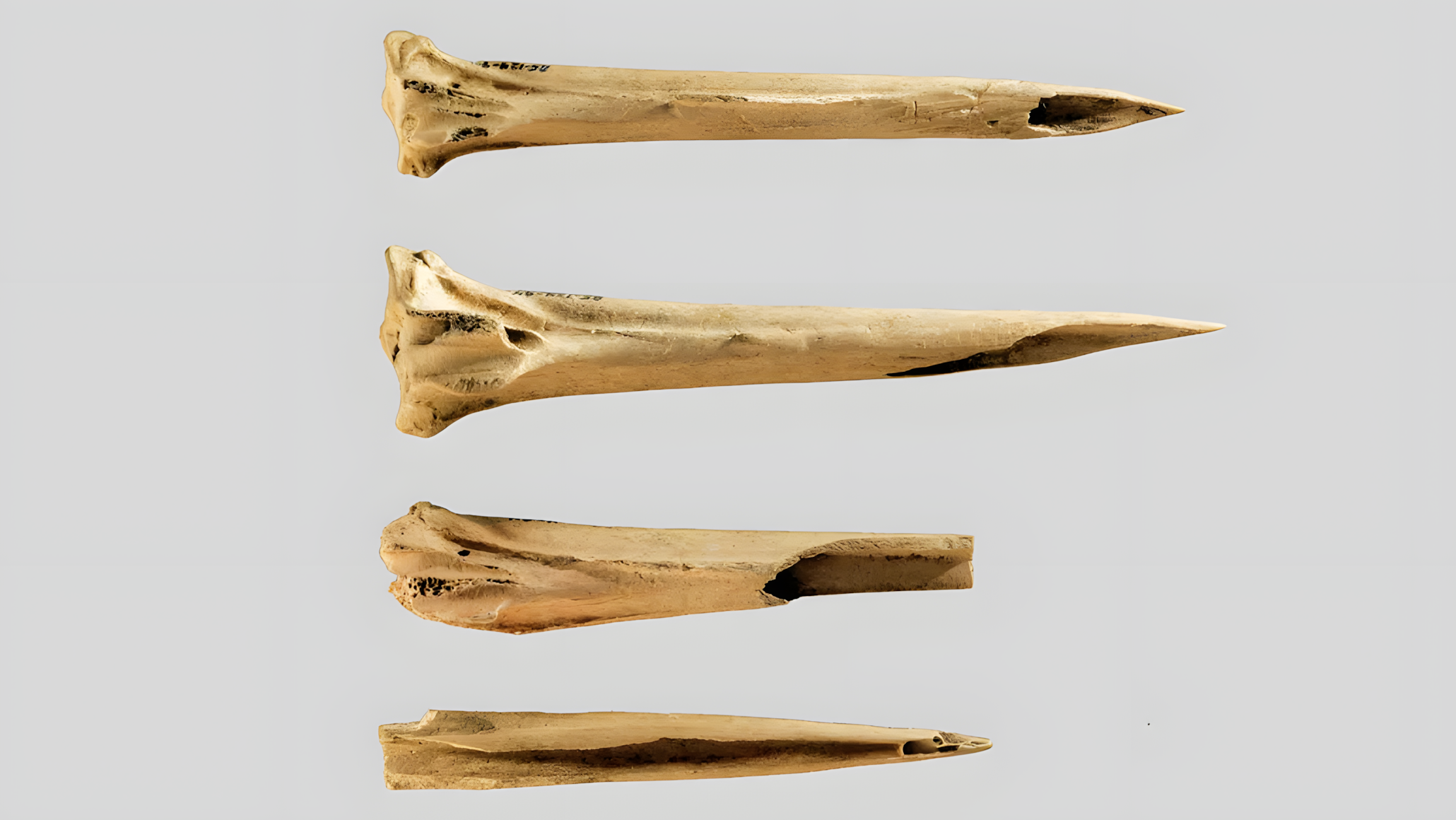 두 칠면조 다리뼈 끝부분과 그 주변 손상은 이전에 사슴 뼈로 만든 실험용 문신 도구에서 관찰된 특징적인 마모와 유사하다고 디터-울프 연구팀은 밝혔다.