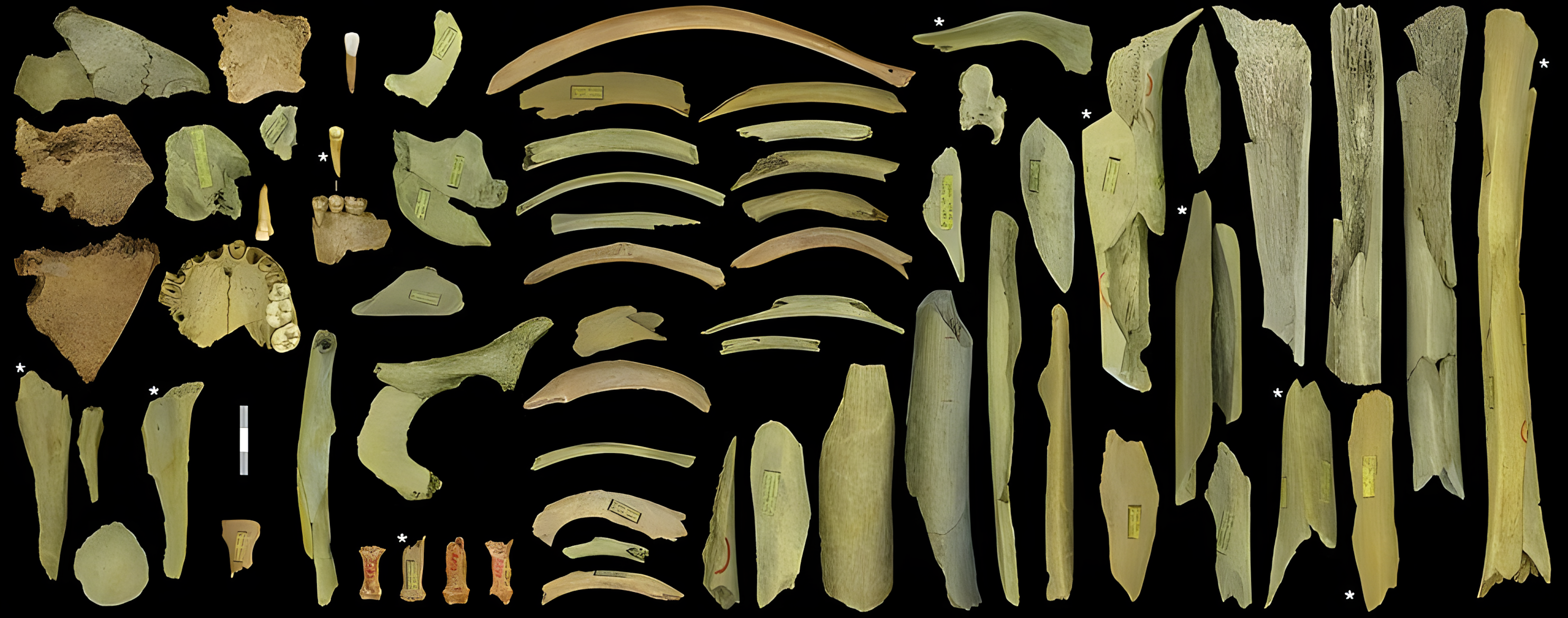 이러한 조작은 다른 네안데르탈 유적에서도 관찰되었지만, 과학자들은 그들이 음식을 위해 그랬는지, 아니면 의식을 위해 그랬는지 아직 알지 못한다. 과학자들은 이 호미니드 뼈 유해를 다량 발견했다."