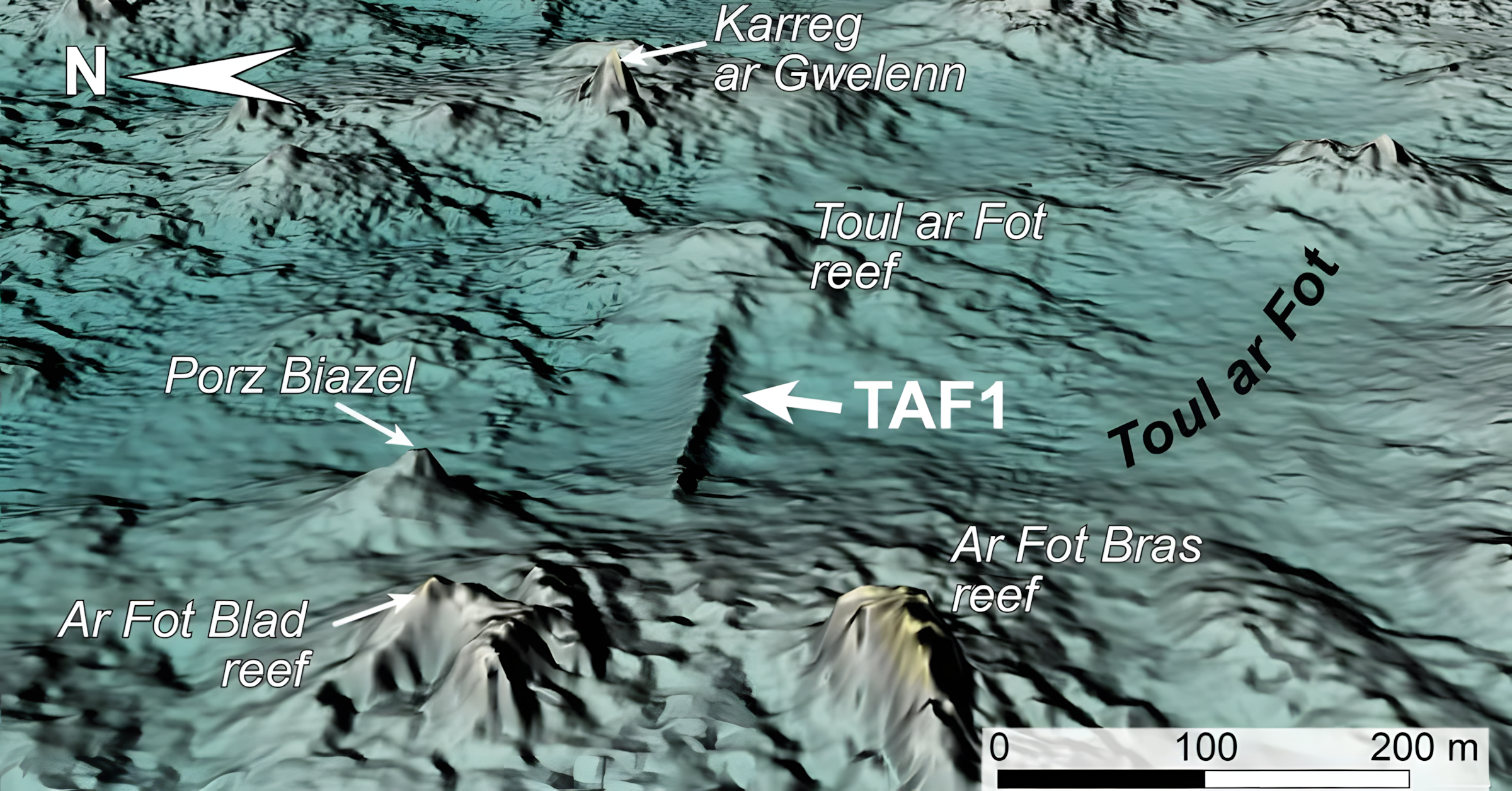 "툴 아르 포트Toul ar Fot (TAF) 해역 디지털 고도 모델 분석을 통해 TAF1, TAF2A, TAF2B, TAF3으로 명명된 네 개 구조물이 확인되었다. 이 구조물들은 세인 섬 서쪽 1.9km 지점, 해저 고원 북쪽과 남쪽 경계 중간 지점에 위치한다"고 연구 저자들은 밝혔다.