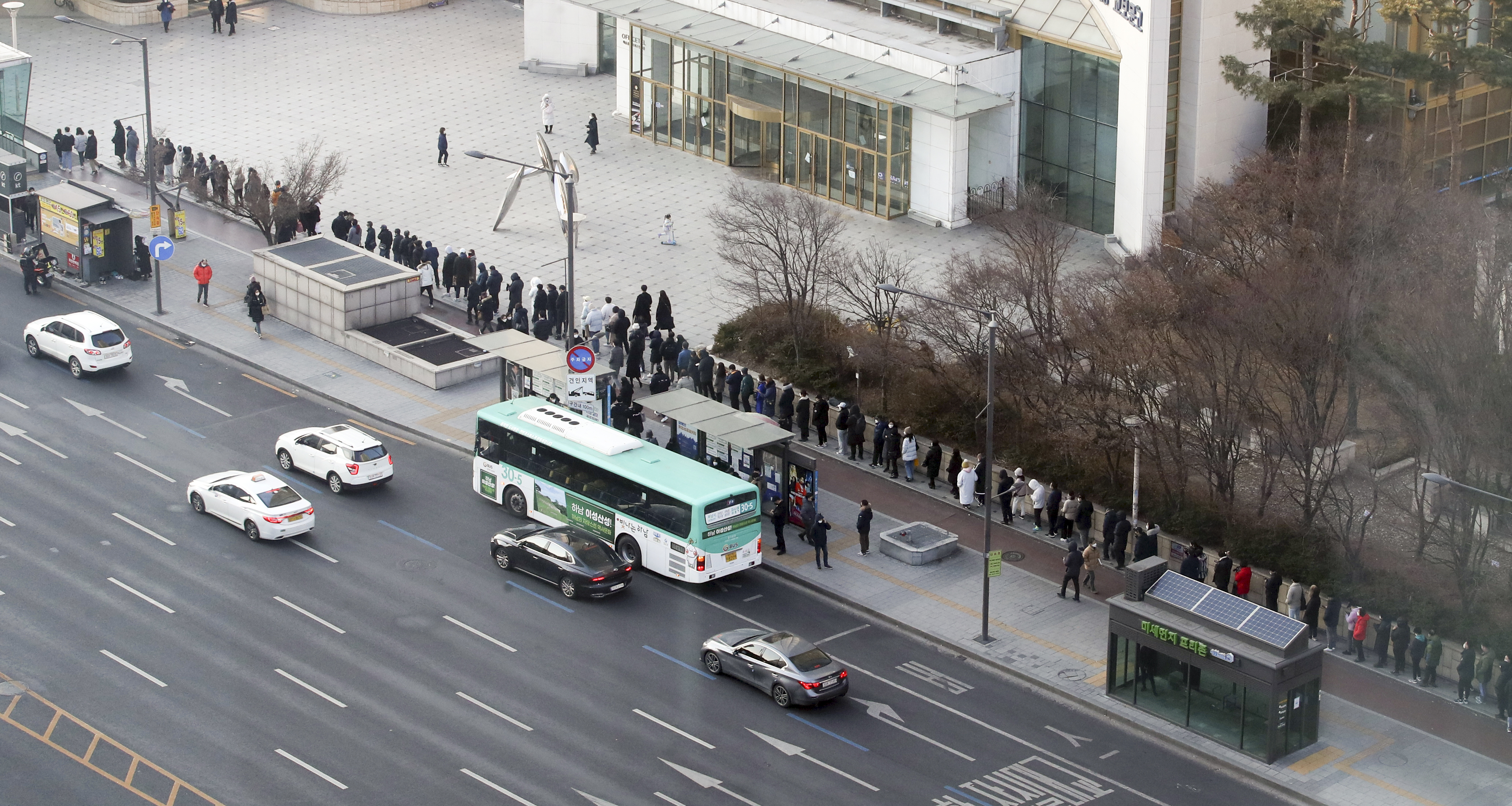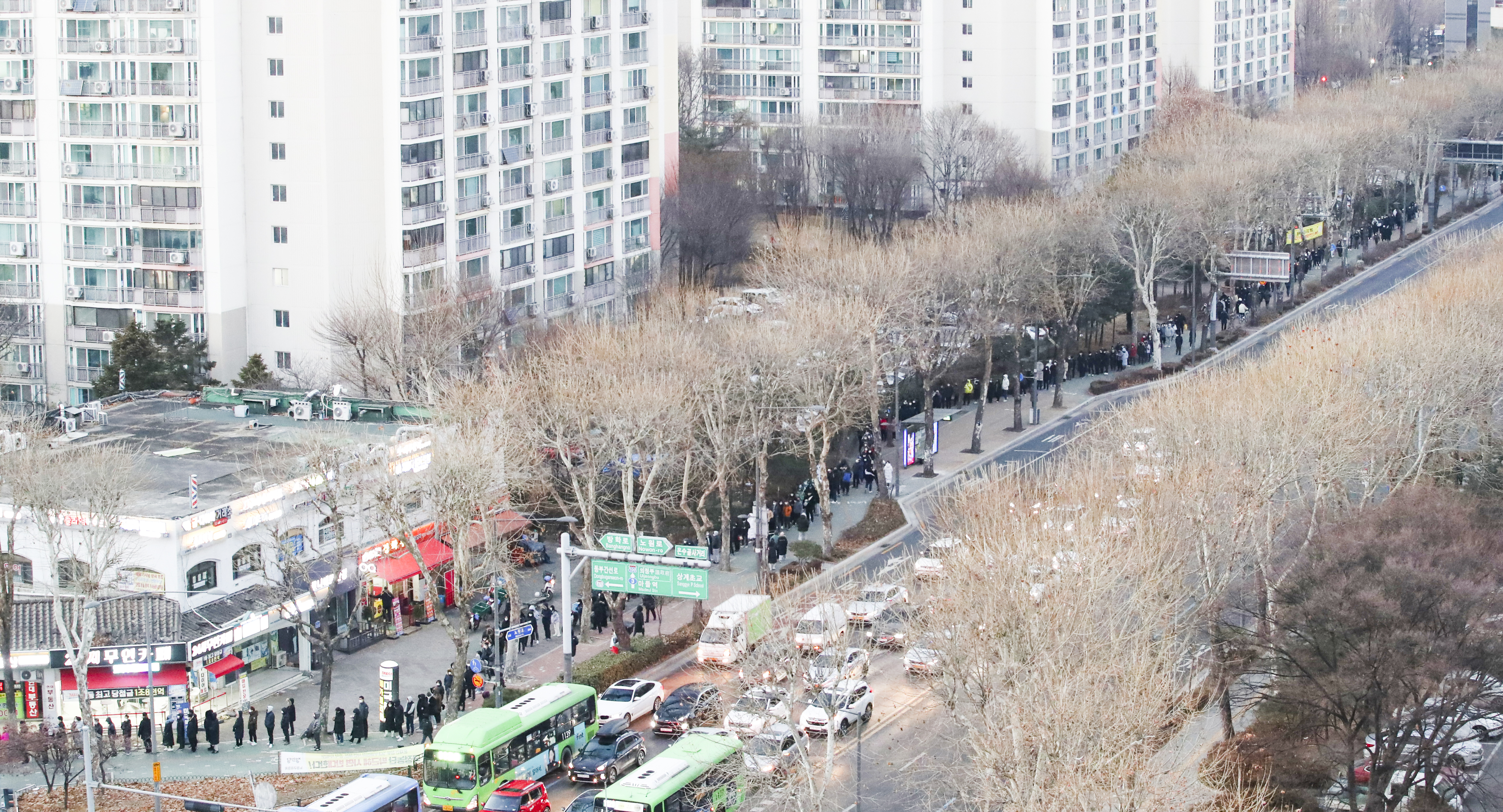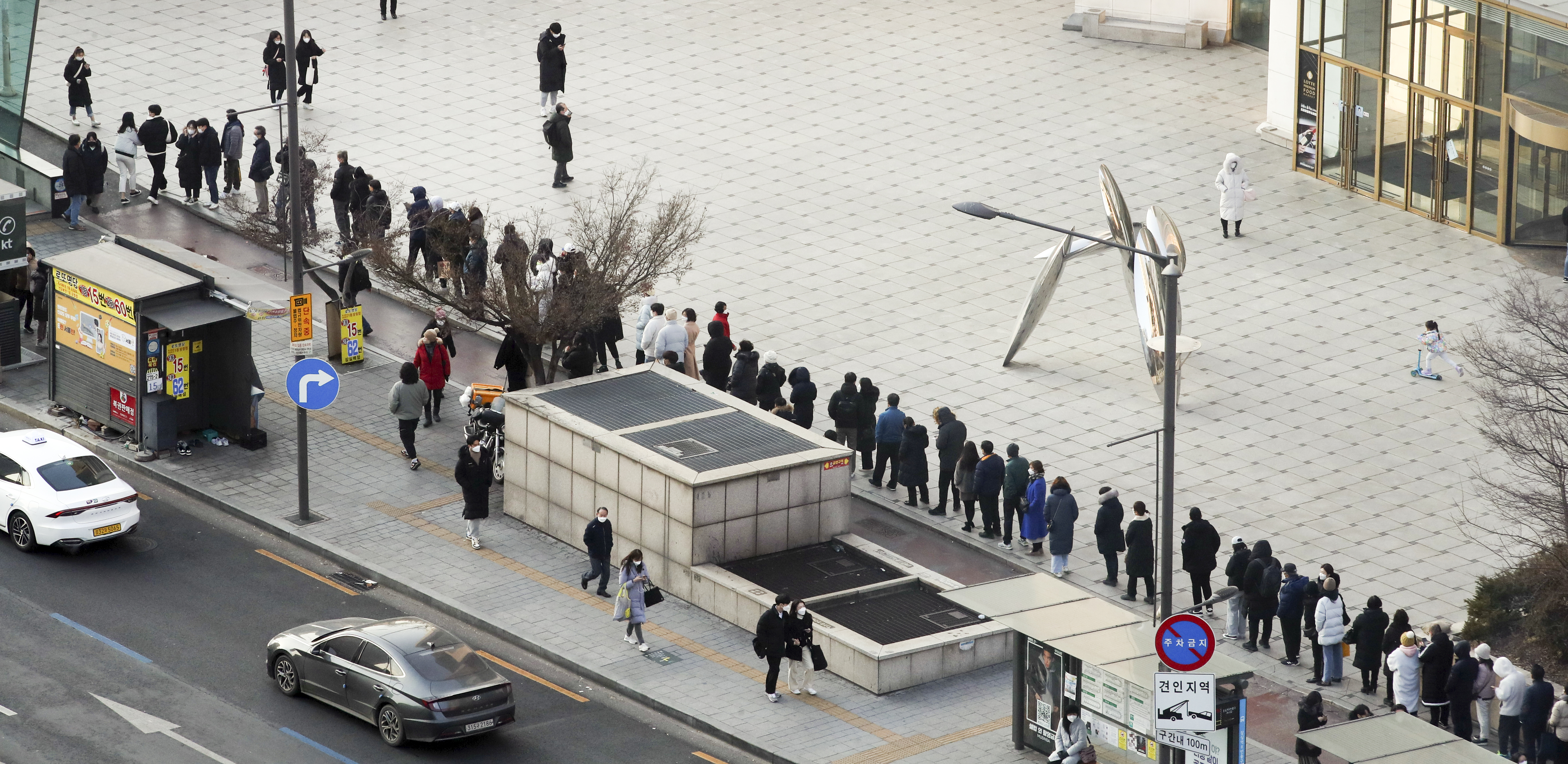 Citizens are waiting in a long line to purchase lottery tickets in front of a lottery store near Jamsil Station in Songpa-gu, Seoul, on the afternoon of the 1st, New Year's Day. 2022.1.2 (Yonhapnews)