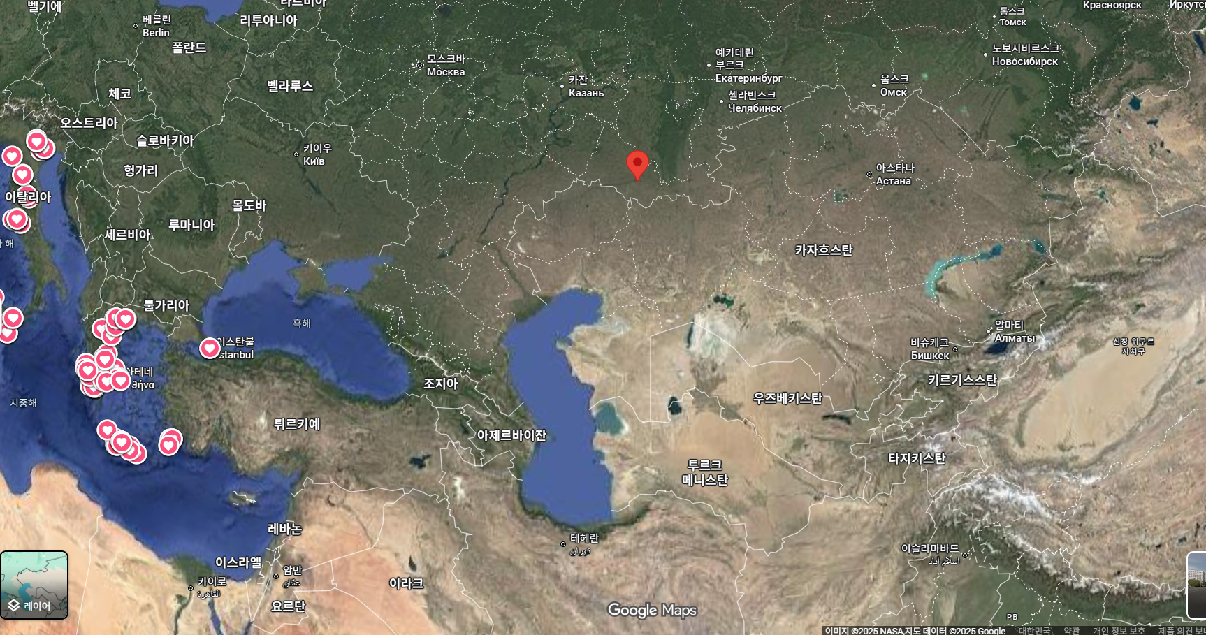 이곳을 찍어보니 아래와 같다. 카스피해 북쪽이다.