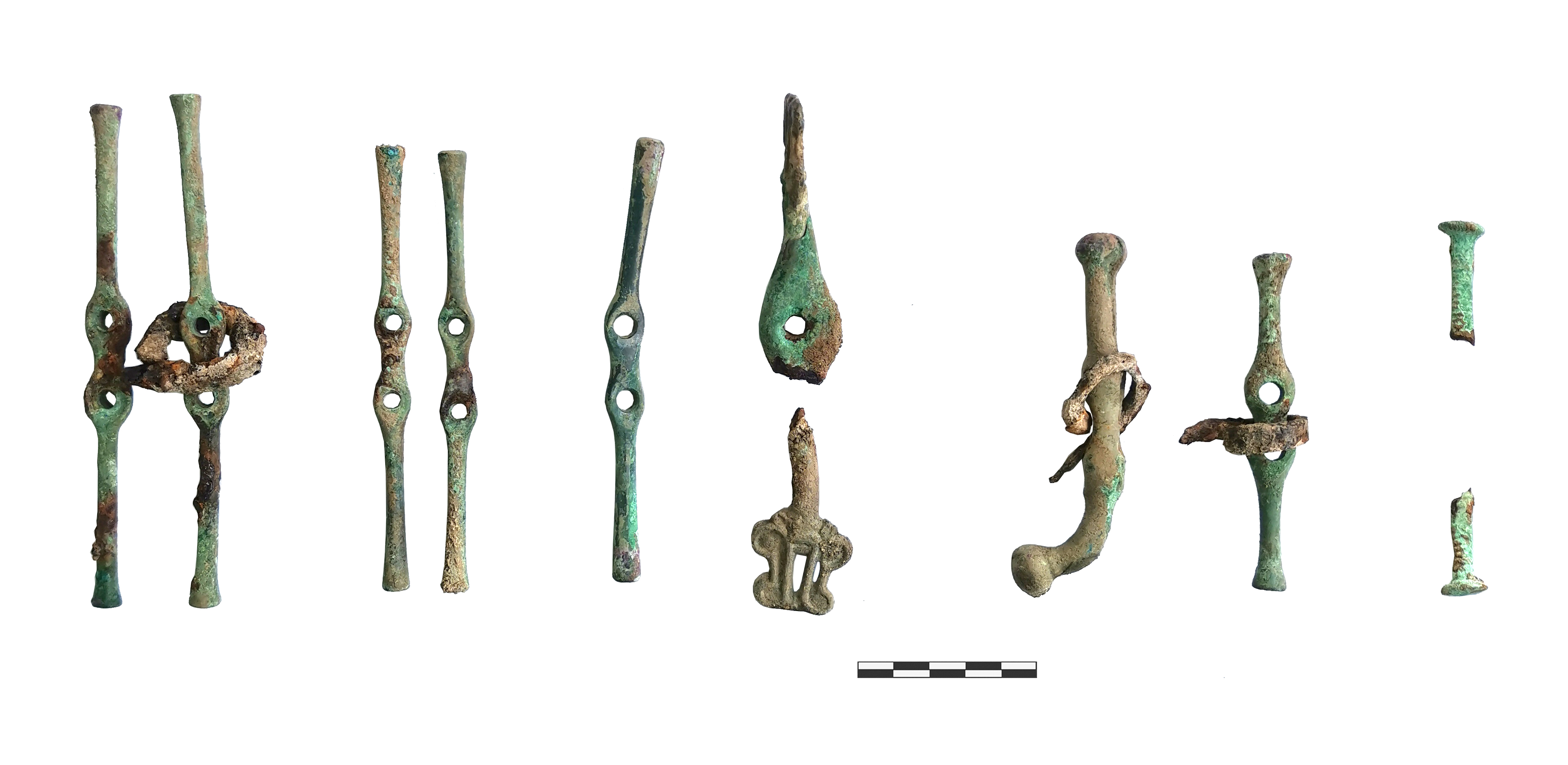 고고학자들은 철제 재갈iron bits, 뿔, 금속 프살리아metal psalia를 포함한 완전한 고삐 세트, 청동 마구, 그리고 다양한 모양과 크기의 수많은 장식용 명판을 기록했다.