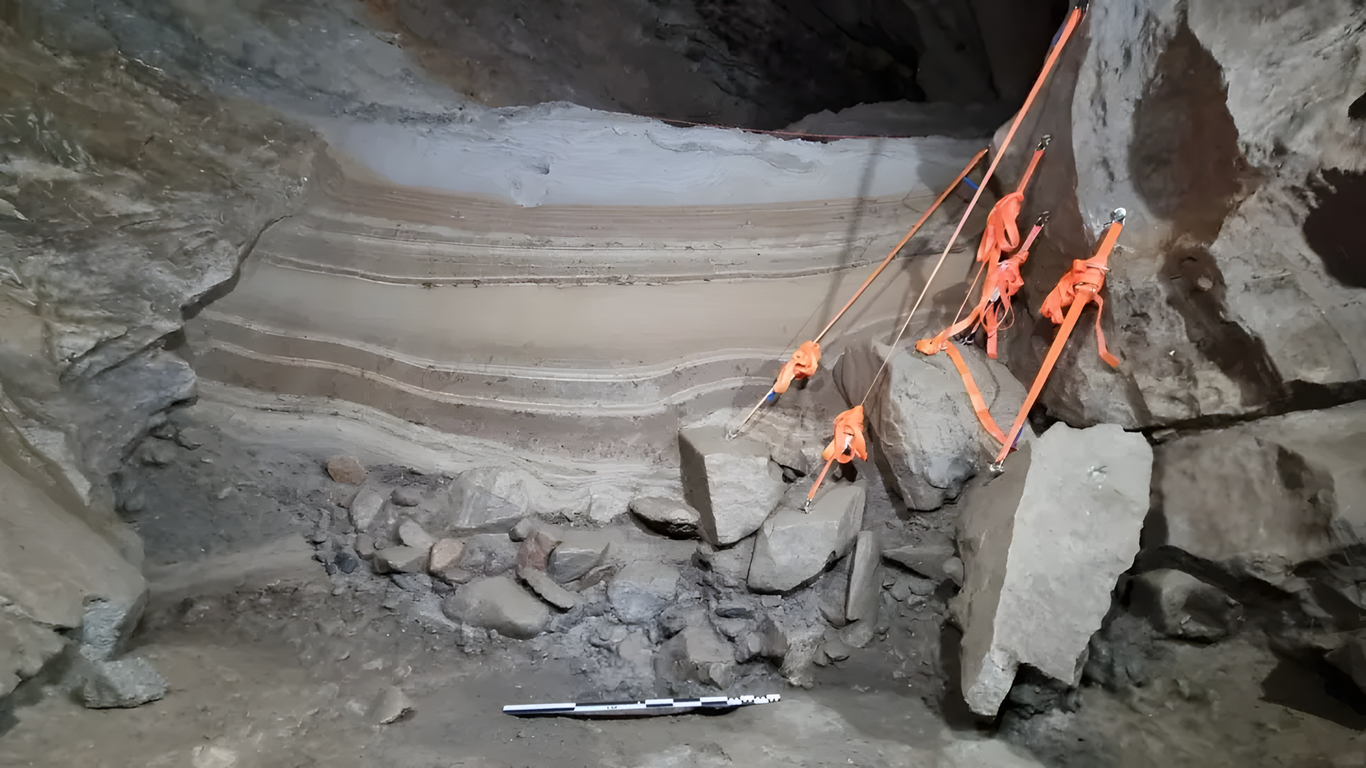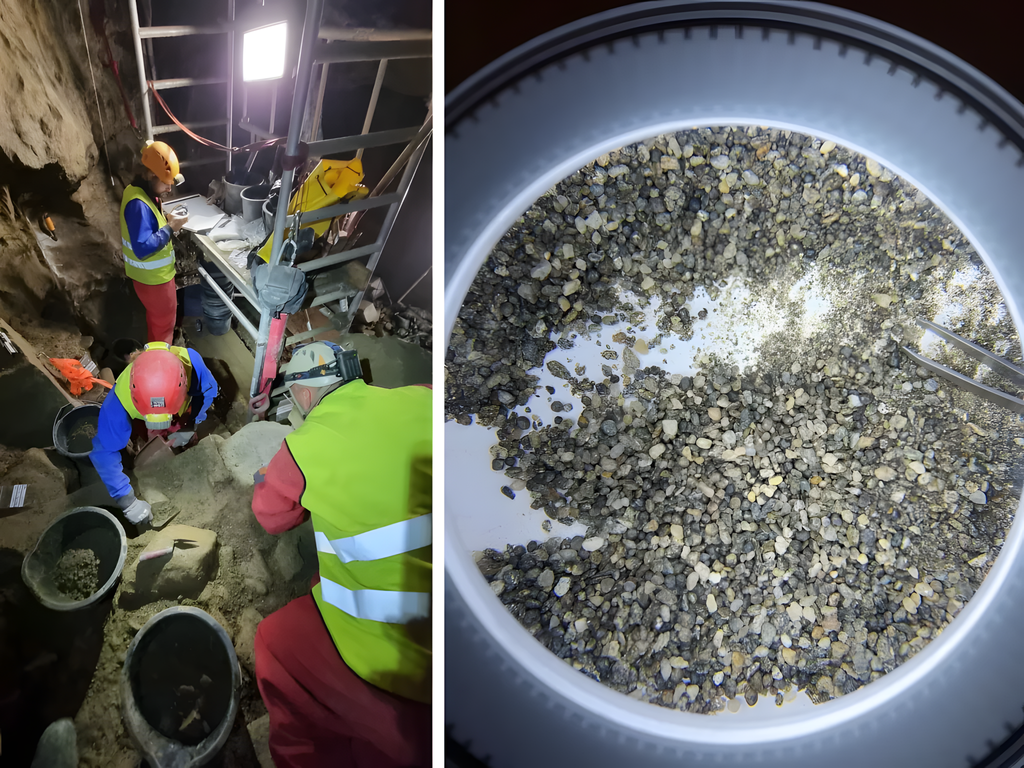 연구진은 해양 동위원소 5a[Marine Isotope Stage 5a] 단계(약 8만 5천 년에서 7만 1천 년 전)로 알려진 비교적 완만한 빙하기 간극relatively mild interstadial phase of the Ice Age에 해당하는 퇴적층에서 수천 점 뼈 조각을 발굴했다.
