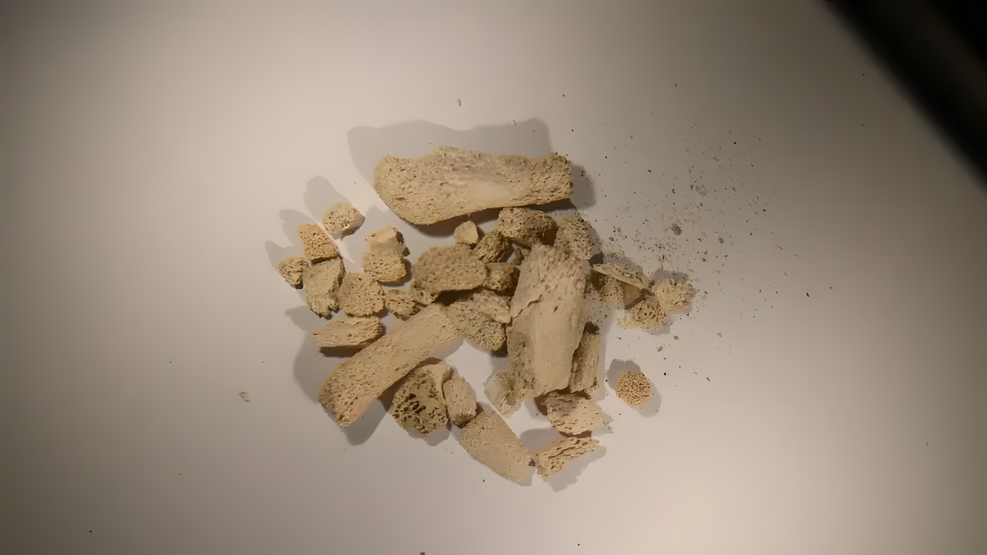 동굴에 있던 뼈 대부분은 몇 밀리미터 길이 조각으로 부서져 있었다.