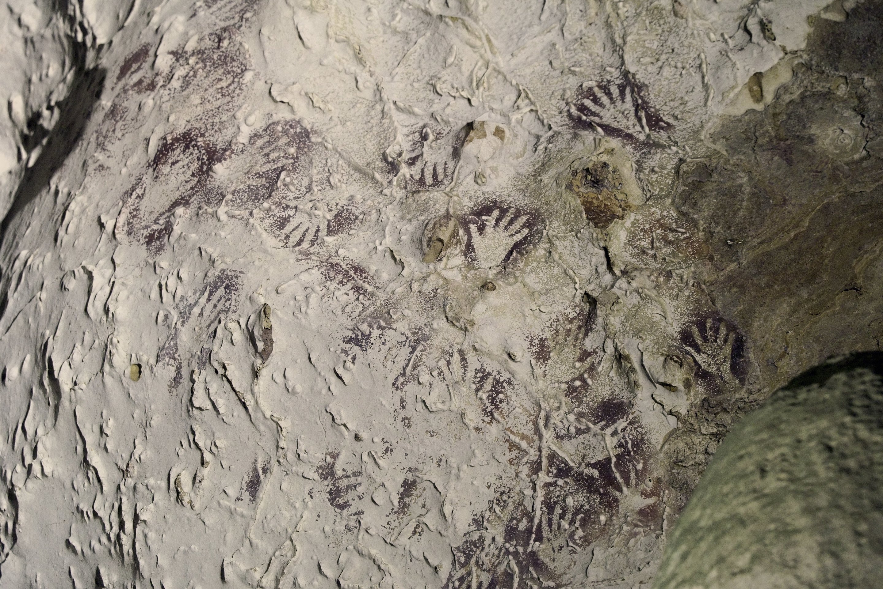 그들은 바위에 손을 대고 붉은 염료를 튜브를 통해 불어넣어 손의 윤곽을 그린 손 모양 스텐실 연대를 약 4만 년 전으로 추정했다.