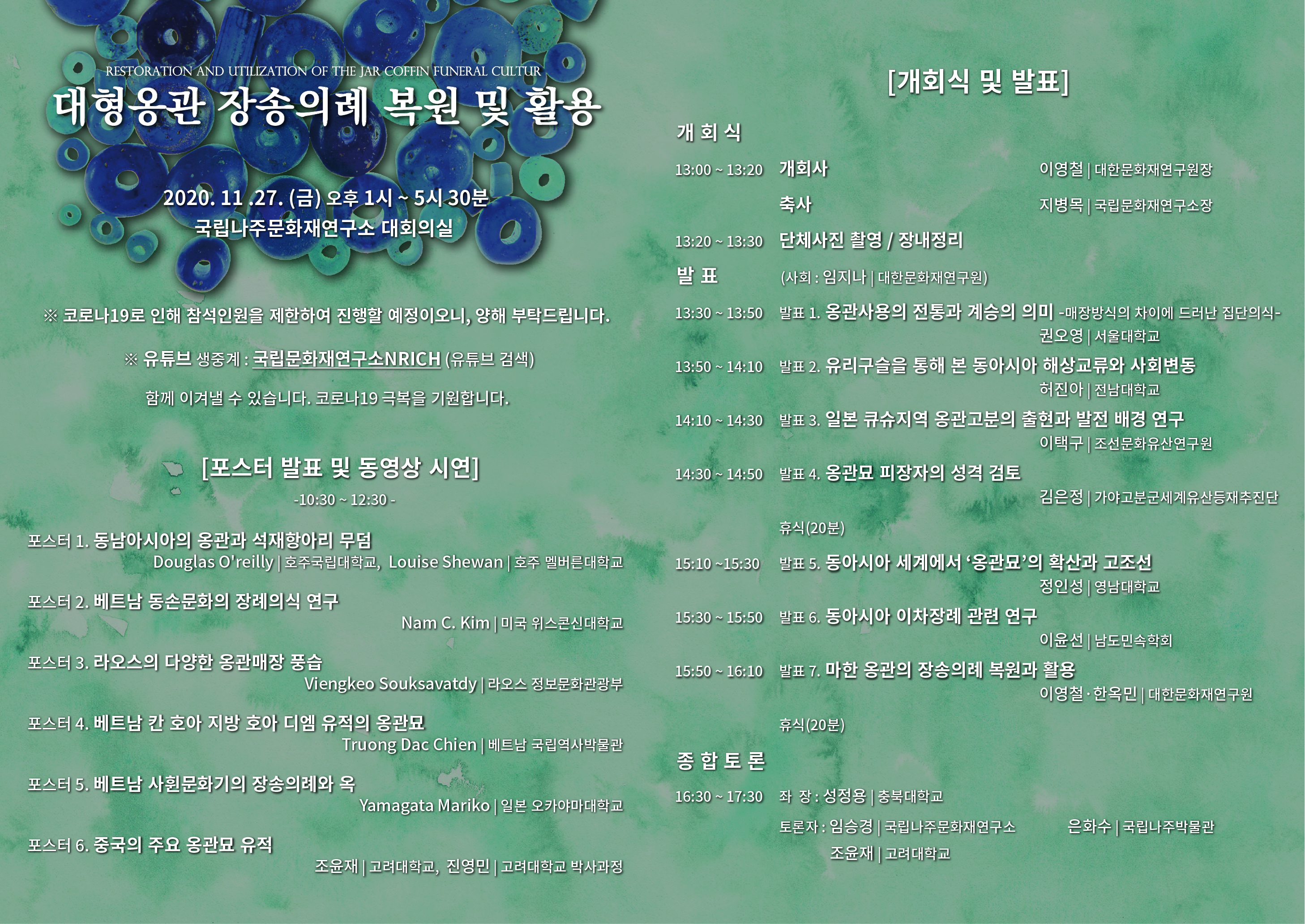 - Co-hosted by the Naju National Research Institute of Cultural Heritage and the Daehan Institute Of Cultural Properties on November 27 at the Grand Conference Room of the Naju National Research Institute of Cultural Heritage -