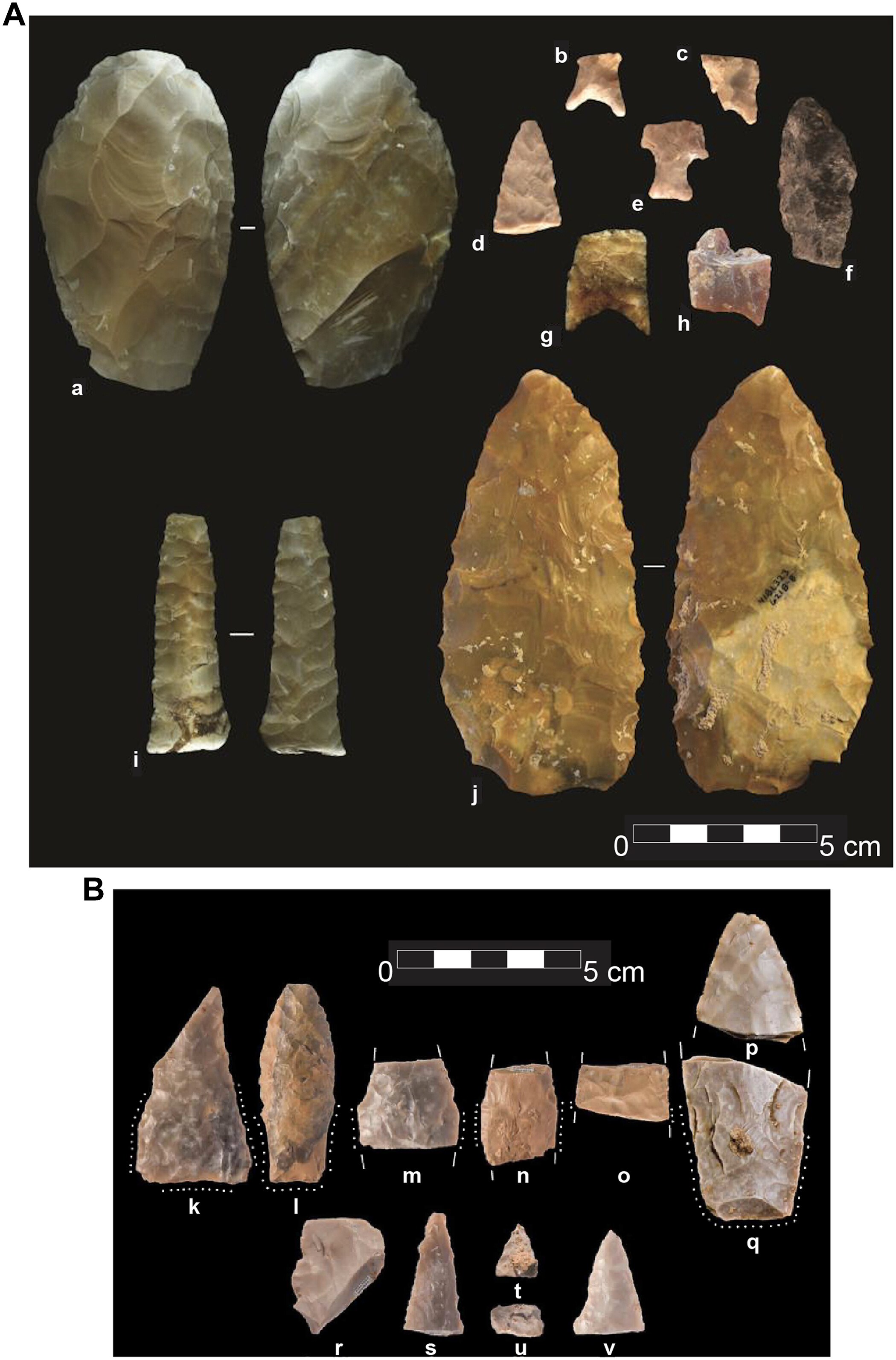 양면bifaces이라 일컫는 투사체 끝부분은 양면이 얇게 벗겨져 내구성이 뛰어나고 날카로운 관통력을 지닌 사냥 무기를 만들어낸다.