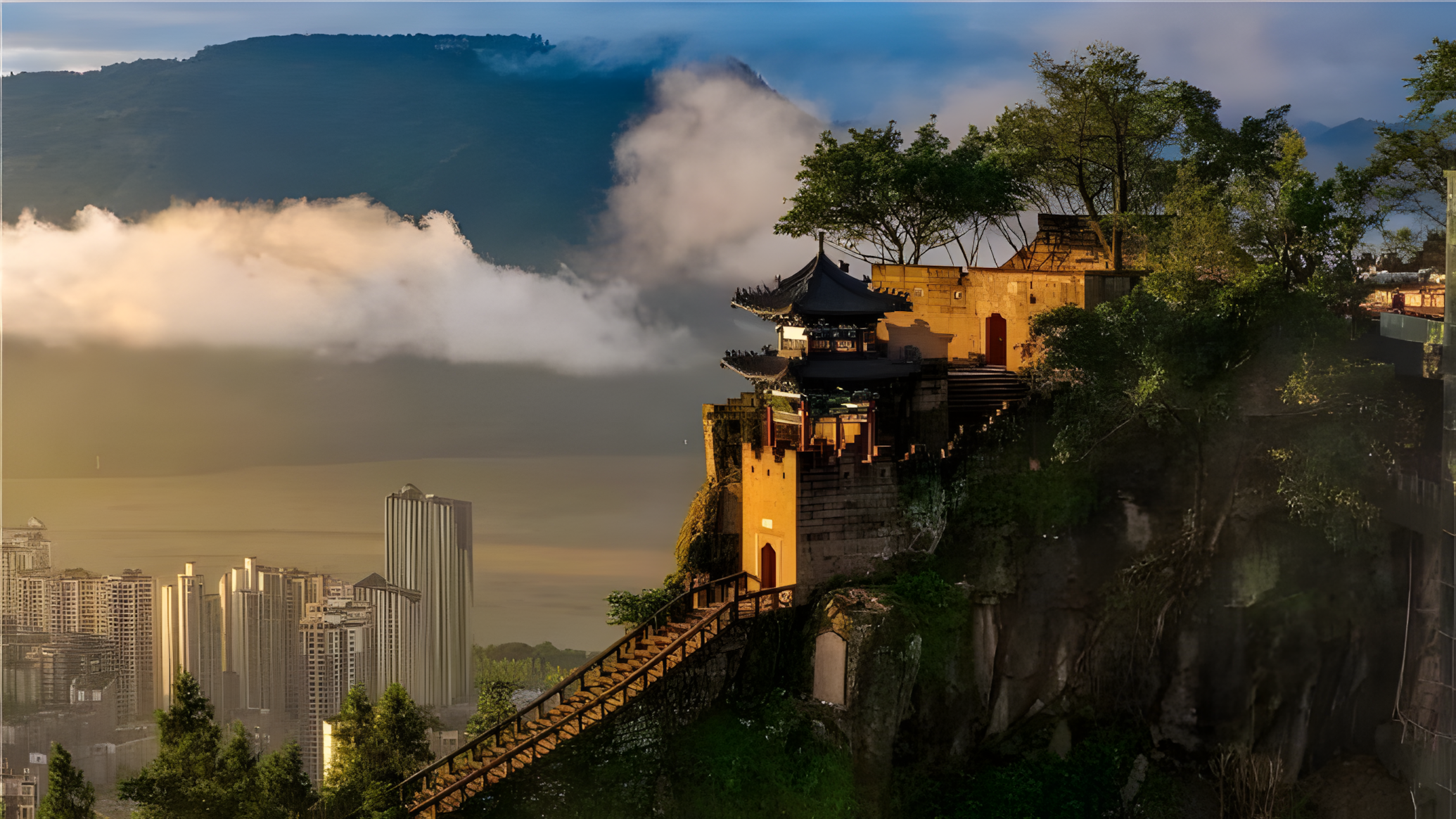Located in Yunyang County, Panshicheng sits atop a separate mountain at the confluence of the Pengxi River and the Yangtze River.