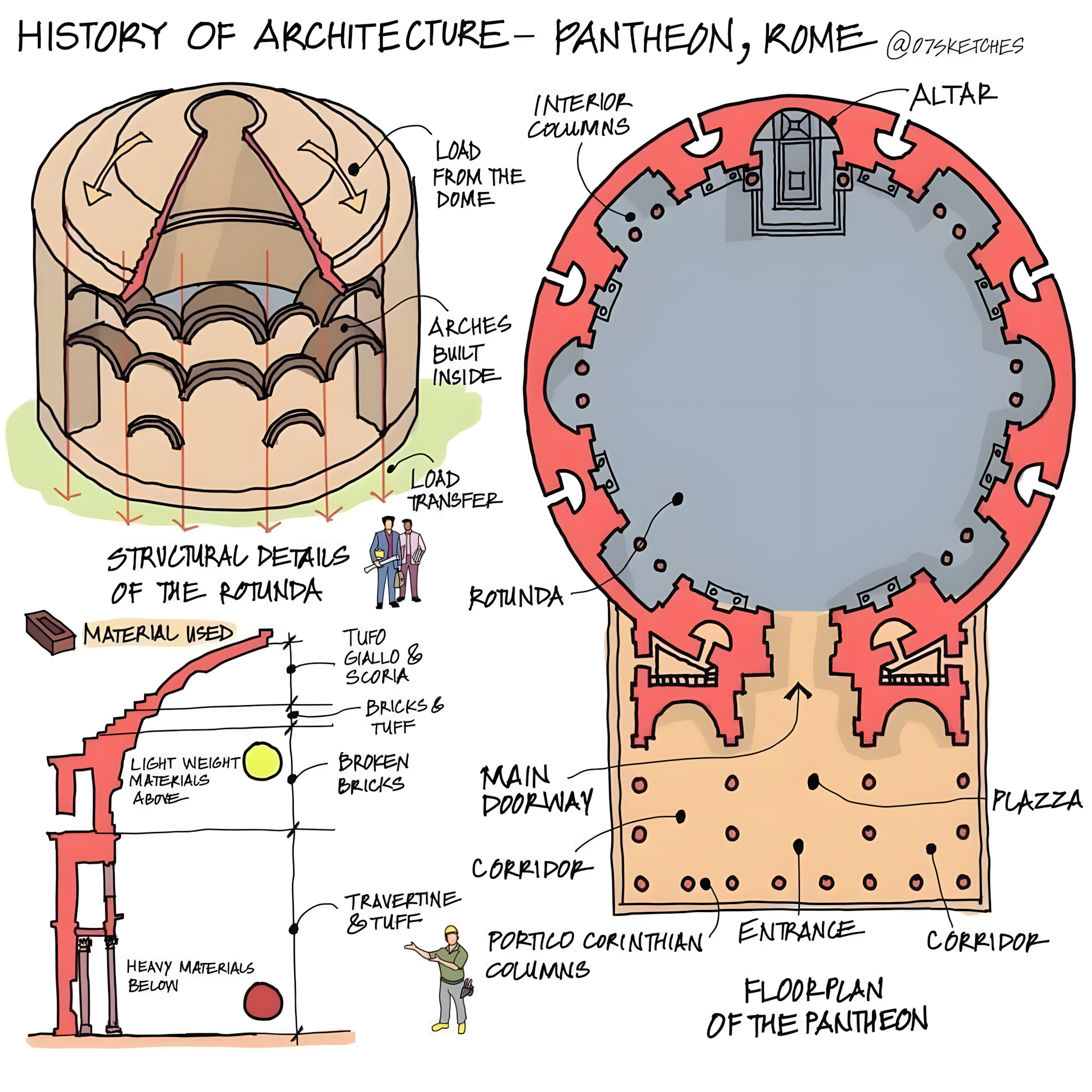 로마는 무수한 콘크리트 건물을 쌓았다.