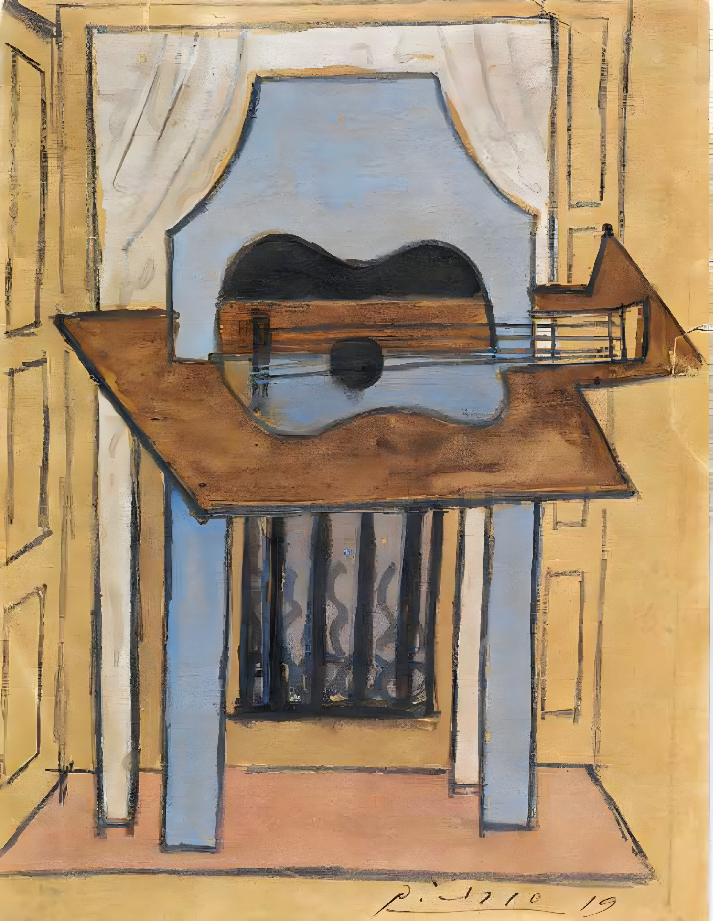 The 1919 gouache work “Still Life with Guitar,” which measures just 12.7 centimeters by 9.8 centimeters (5 inches x 3.9 inches)