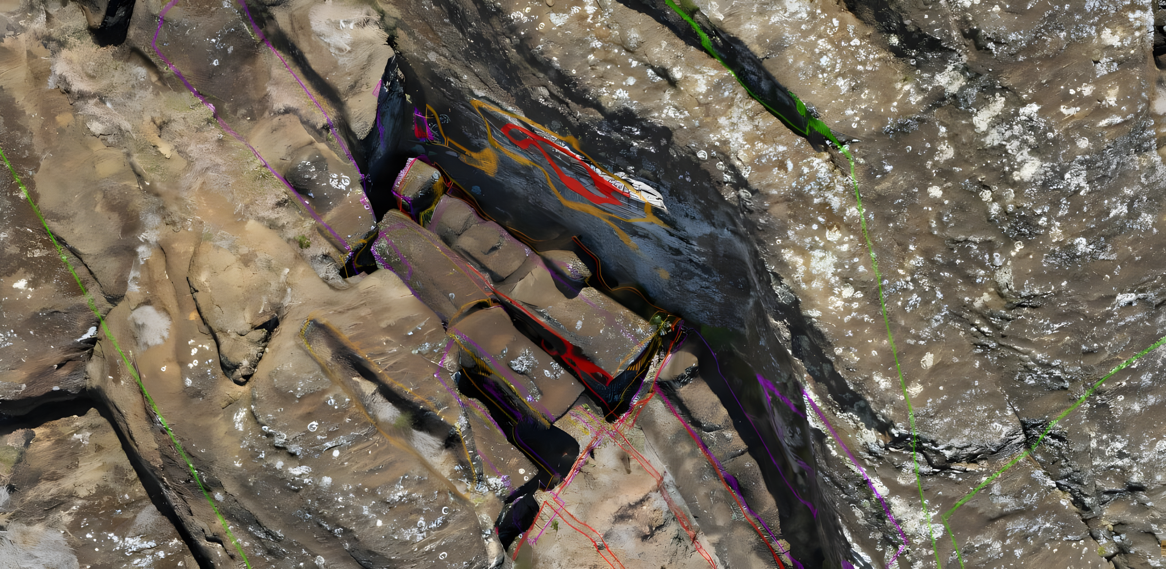 겹치는 조각 표면, 험준한 절벽, 그리고 복잡한 제작 과정으로 이 유적은 2차원으로 기록하기가 특히 어렵다.
