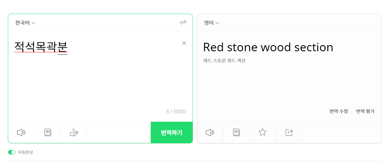 사정이 이러니 적석목곽분을 파파고에 넣어 보니 Red stone wood section 이라 하고, 돌무지덧널무덤이라 하니 a stone mound tomb 라는 번역어가 뜨지 않겠는가? 적석목곽분 하나 자동 번역어 싣지 못하는 이 시스템에 Heritage 분야 종사자들은 부끄러운 줄 알아야 한다.